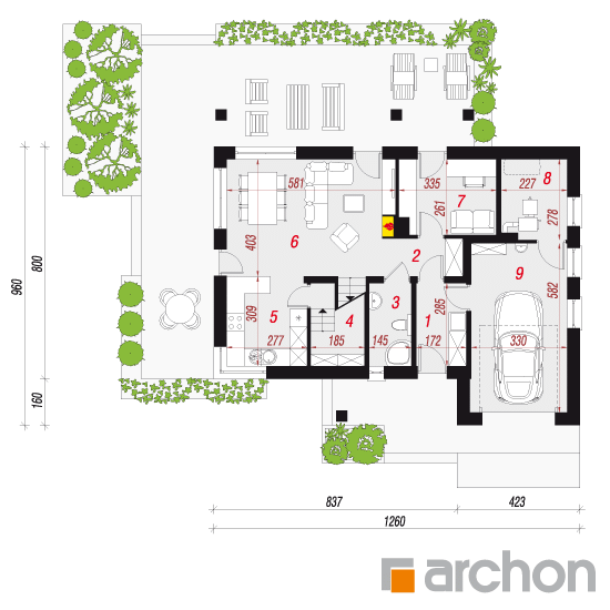 Проект дома Дом в красных кустах Быстрый просмотр