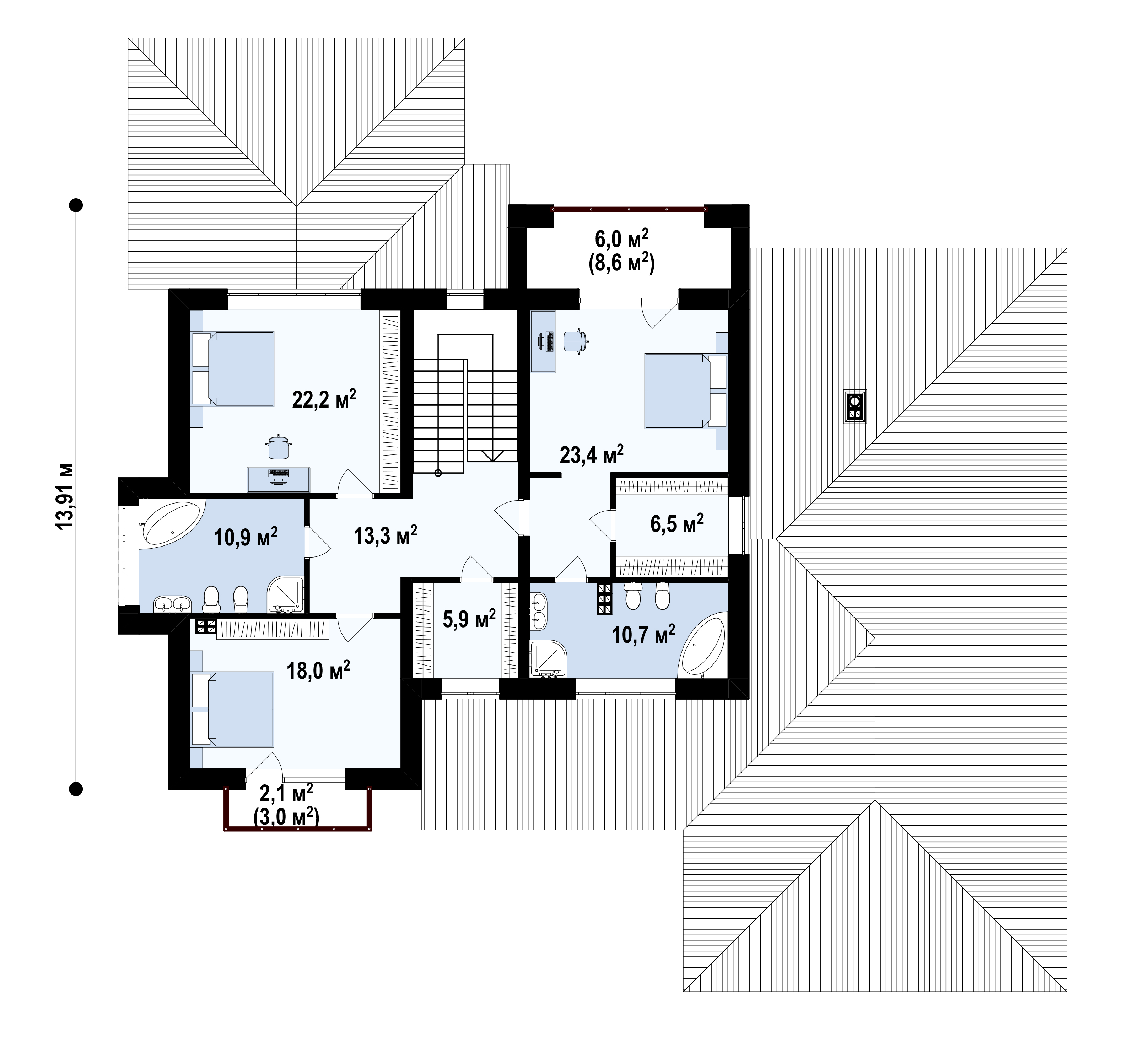 Количество санузлов: 3+