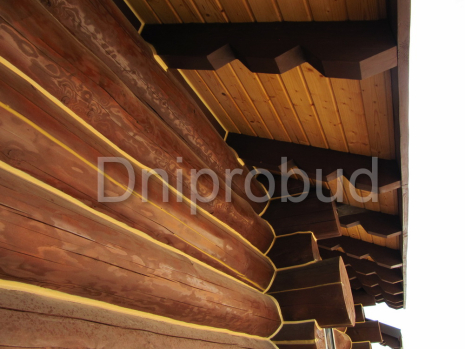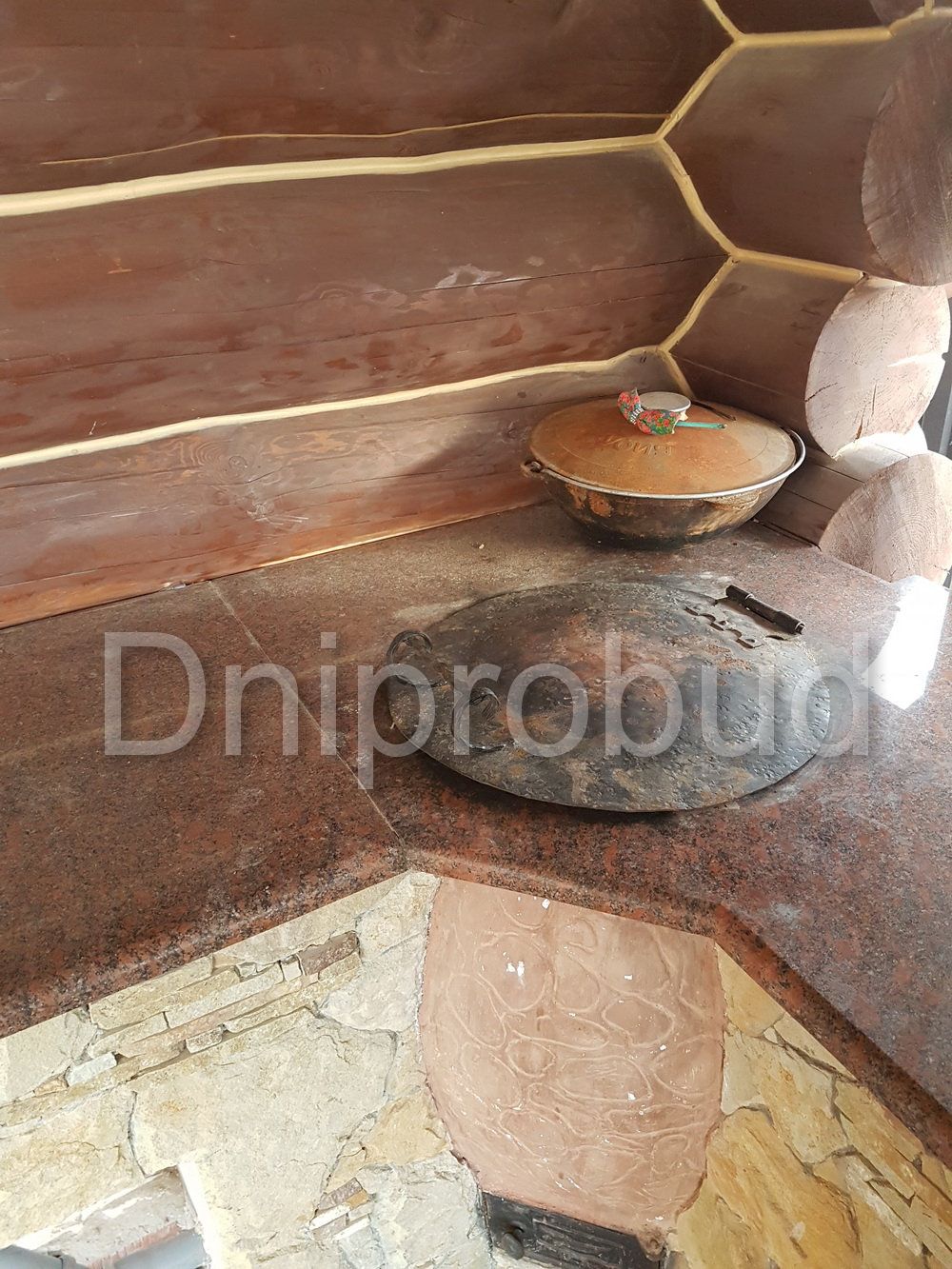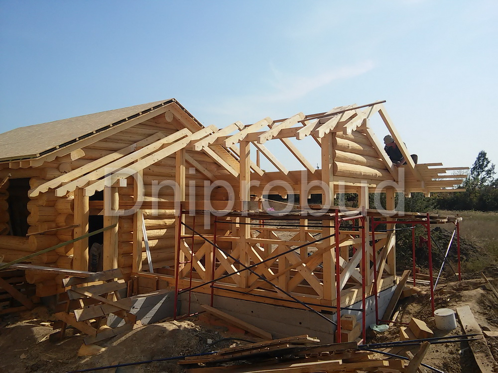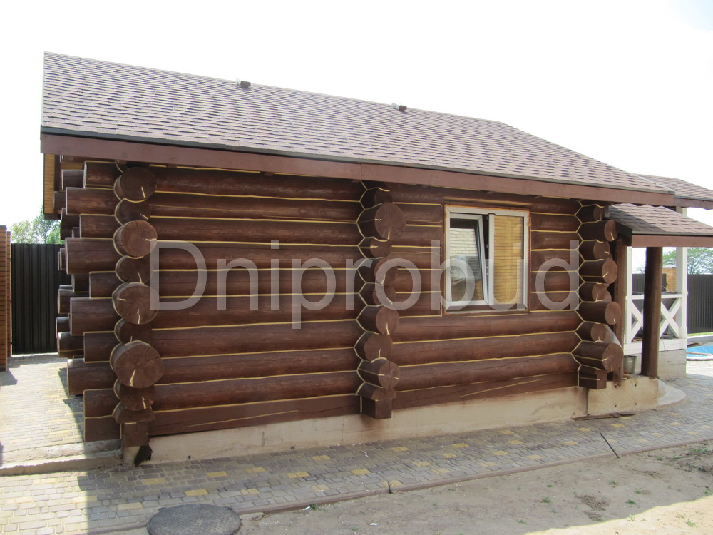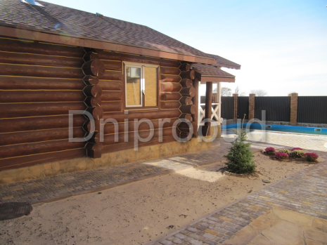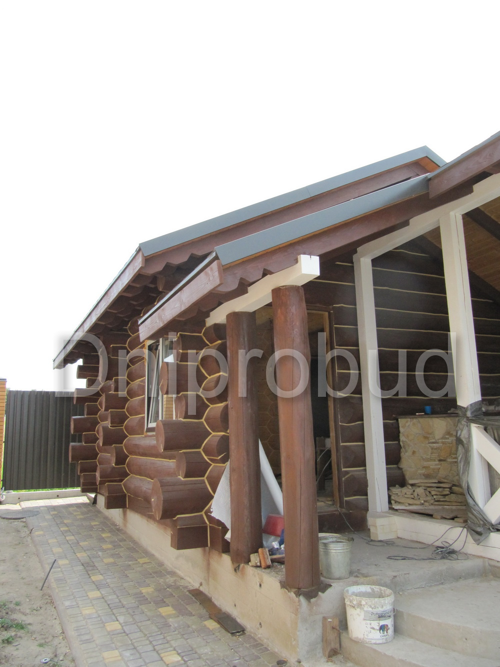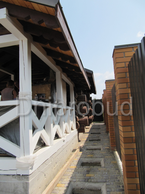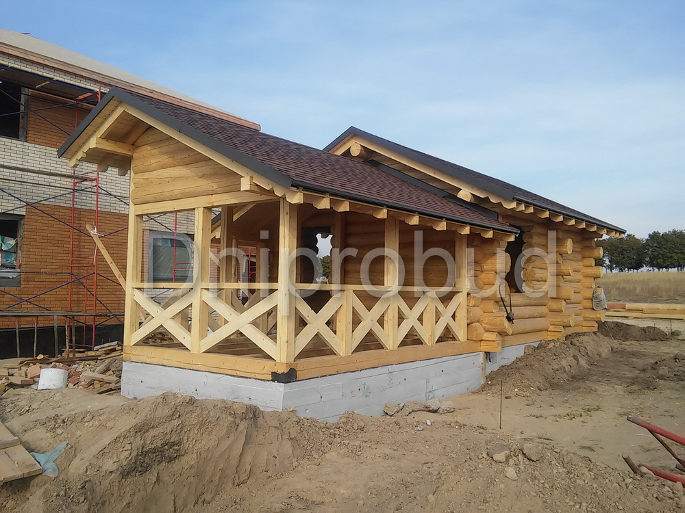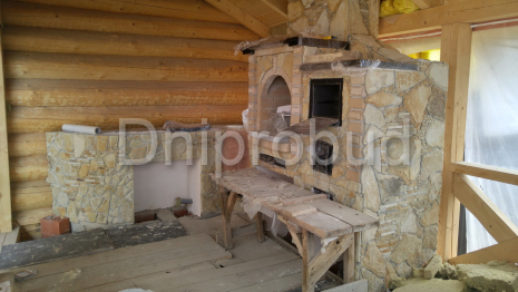 Строительство бани 5*6 из дикого сруба с беседкой 5*4 в Запорожье (с. Кушугум Запорожской области). Барбекю с тандыром и печью.