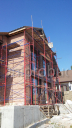 Трёхэтажный дом с цокольным этажом под половиной здания. Год постройки: 2013-2014.