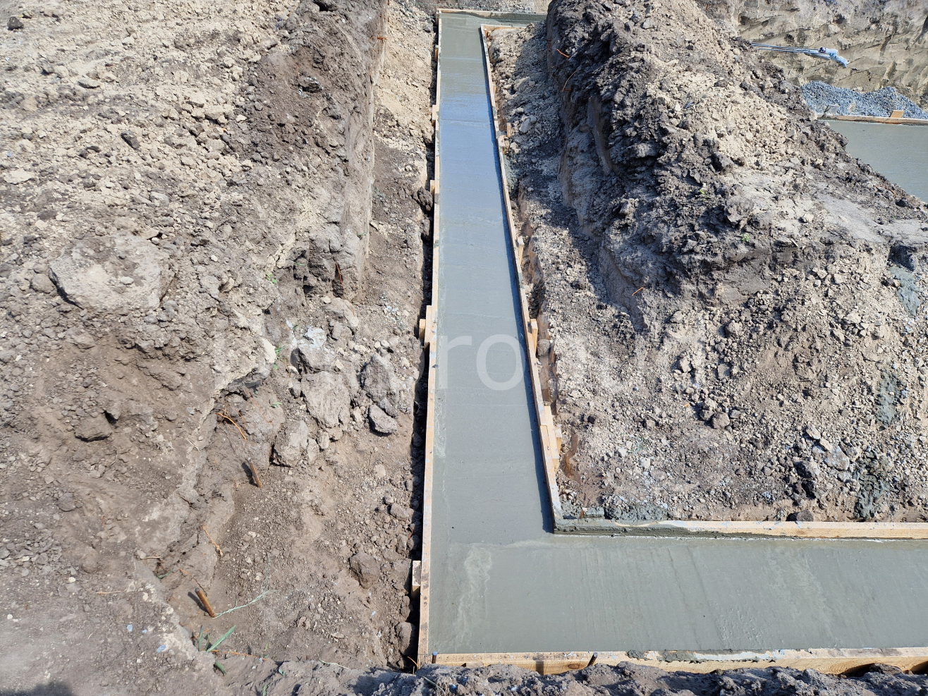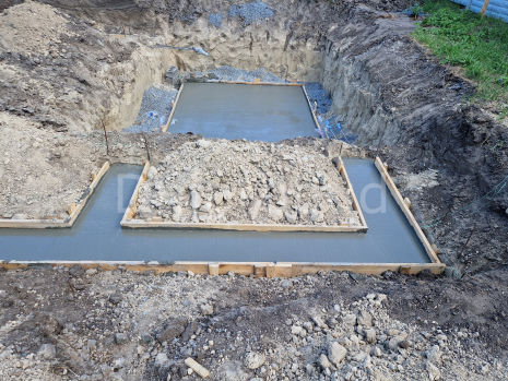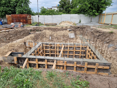 Основой здания является ленточный монолитный фундамент с подвальным помещением под частью дома.