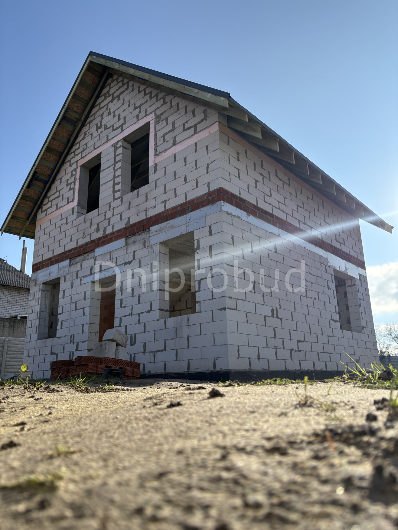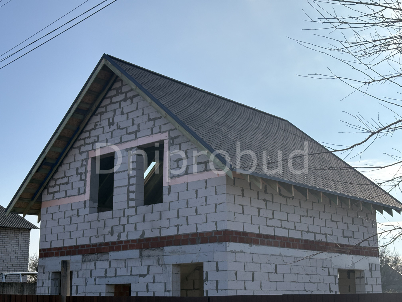 Дом мансардного типа в г. Днепр, который строится по индивидуальному проекту от компании Dniprobud.