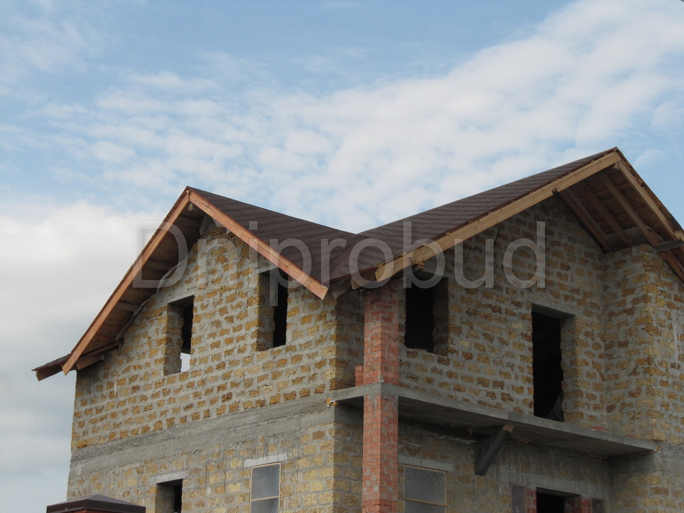 Большой дом с цокольным этажом в Днепре (с. Любимовка). Дом состоит из одного этажа и мансарды (минимальная высота стен 1,4-2,1 м), цокольный этаж под всем домом.