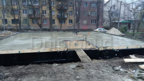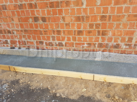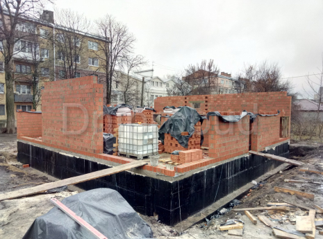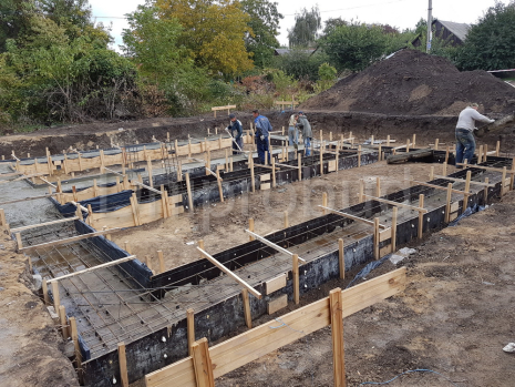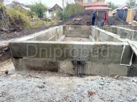 Дом построен на сложных (просадочных) грунтах, что потребовало устройства грунтовой подушки под фундамент.