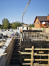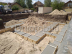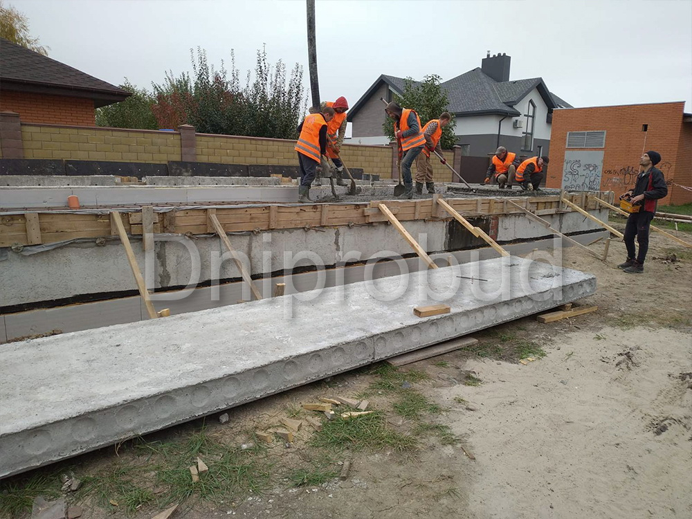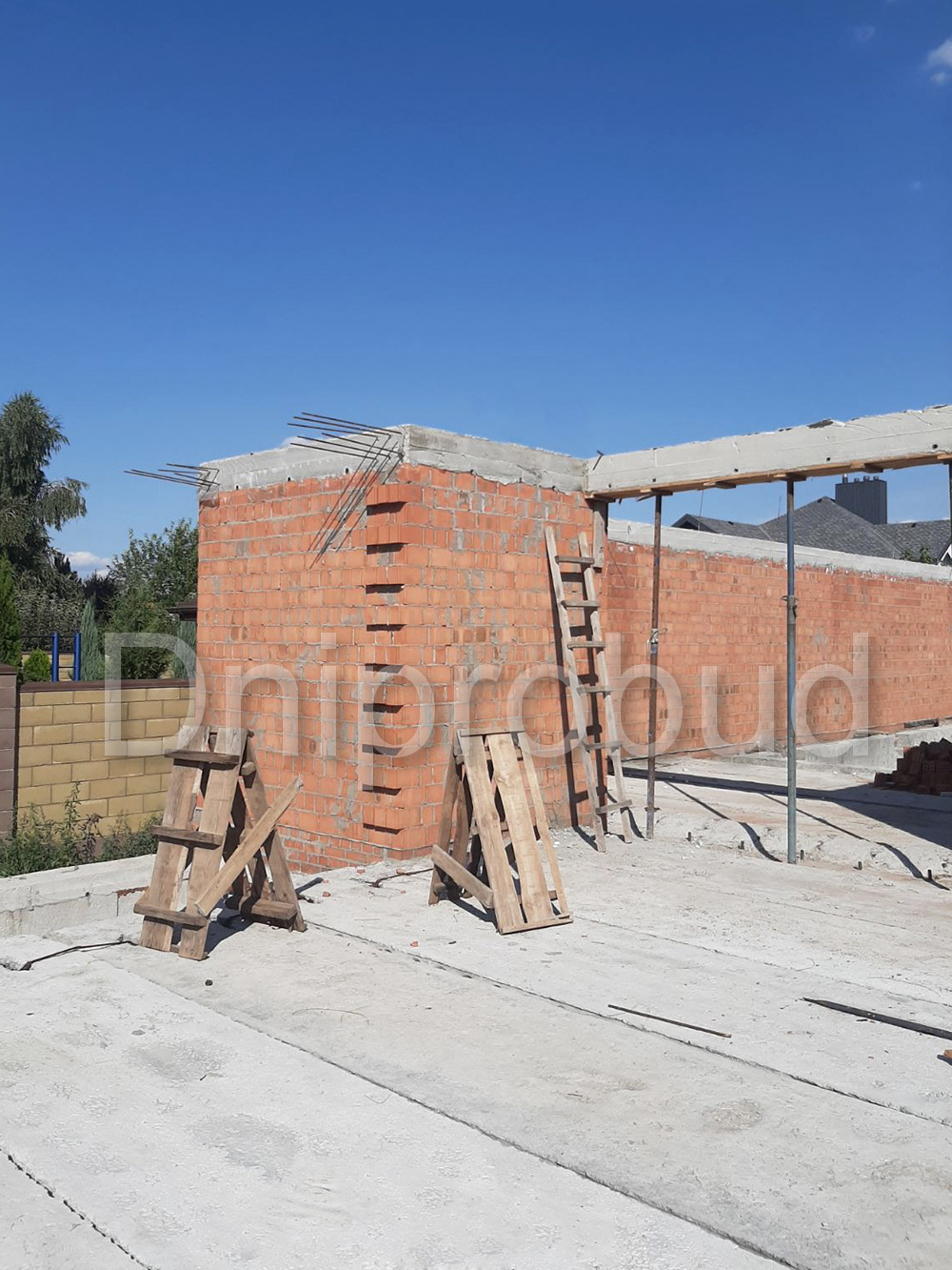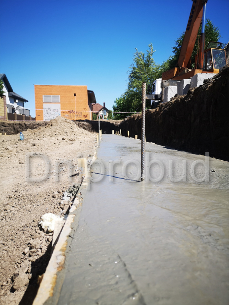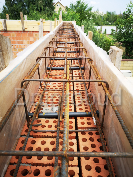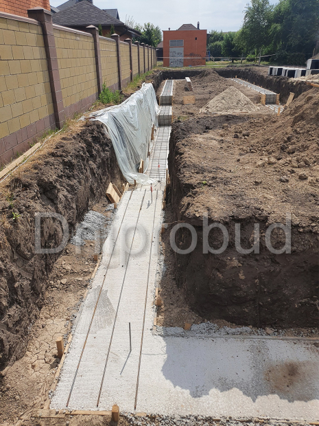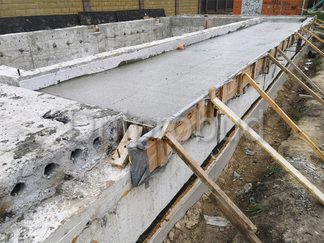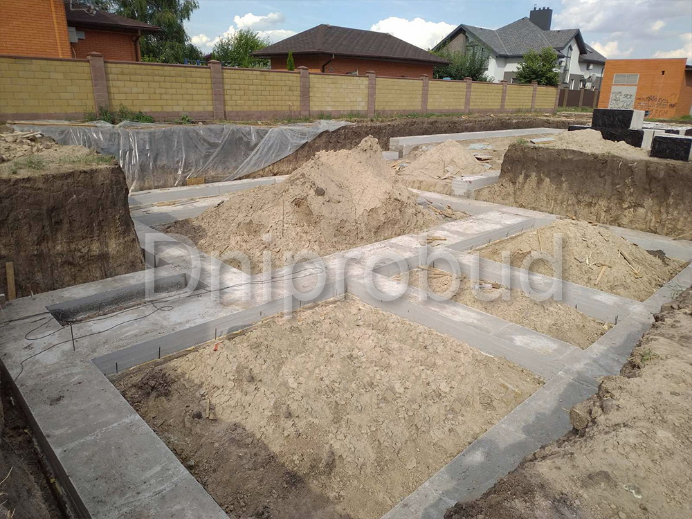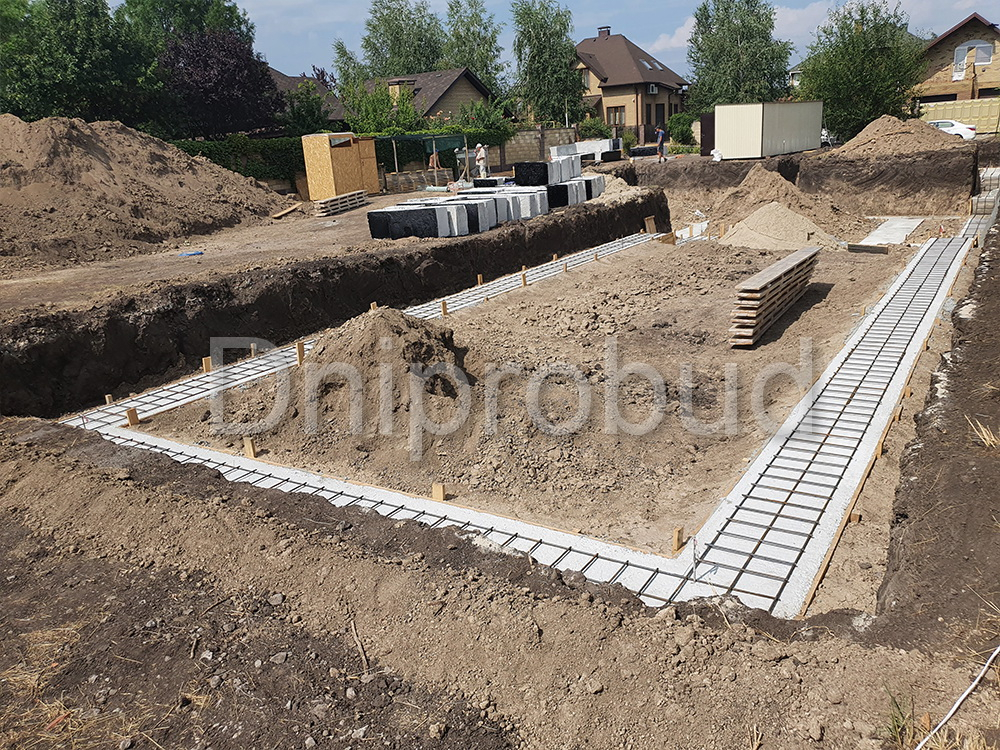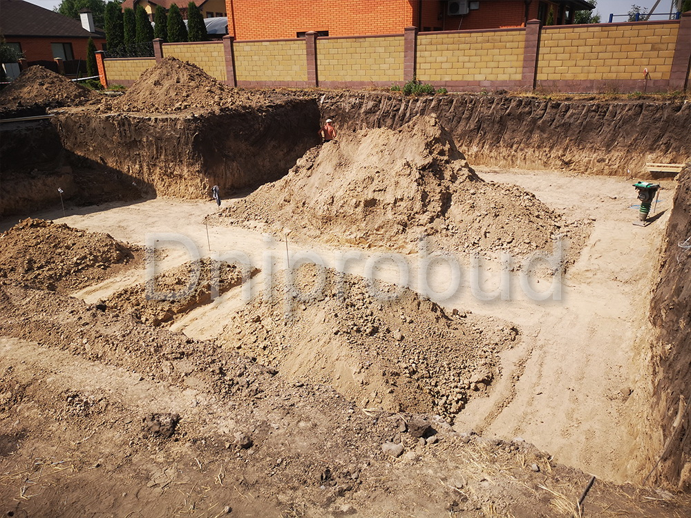 - Устройство цокольного этажа. Участок строительства имеет перепад по высоте всего 0,3м, в пятне застройки дома, поэтому устройство цокольного этажа предполагает большое количество земляных работ. В цокольном этаже дома располагается просторная мастерская, а также технические помещения: топочная, постирочная, помещение для хранения инвентаря. Вход в цокольный этаж осуществляется двумя способами: 1-й - по внутренней лестнице, 2-й - отдельный вход с улицы предусмотренный с левой стороны дома.