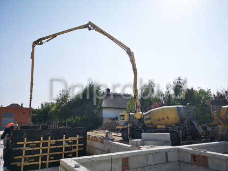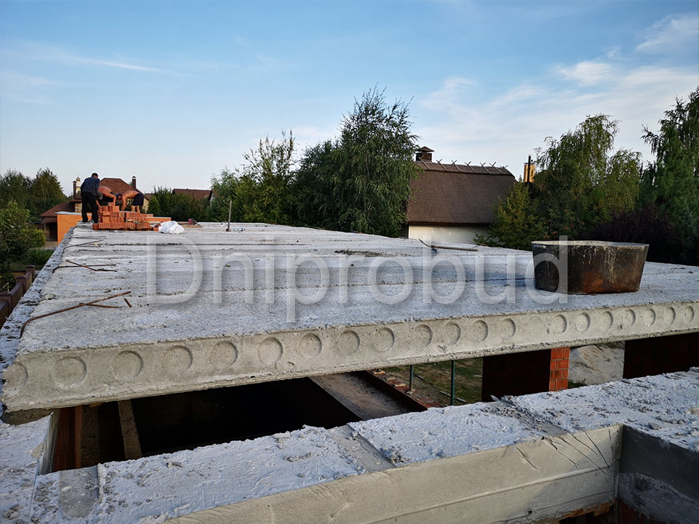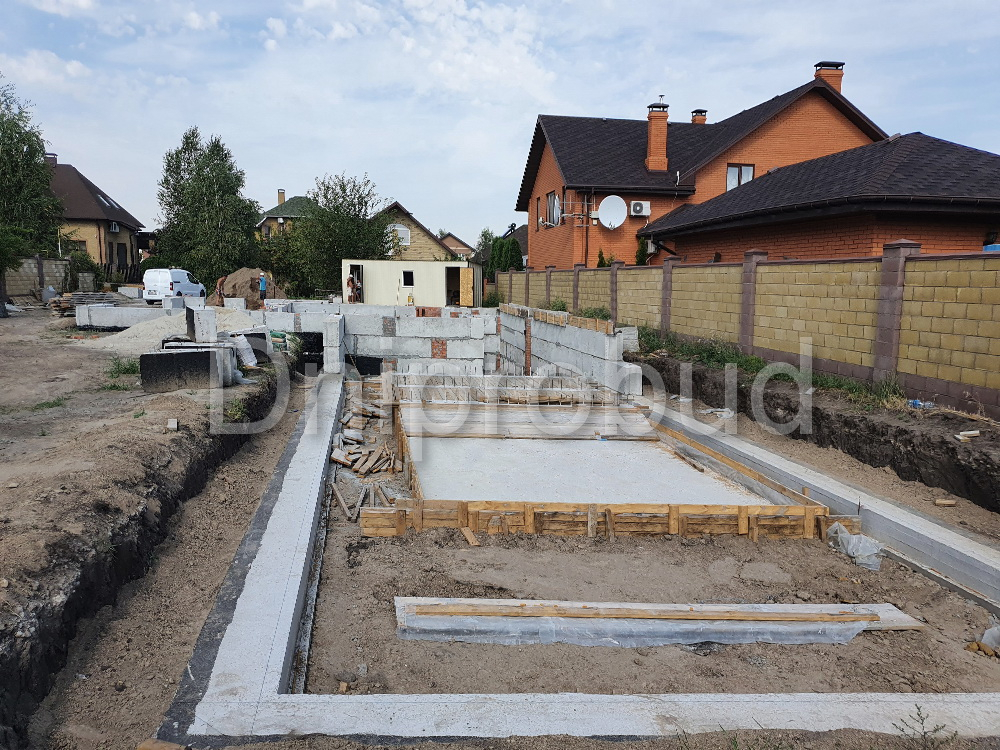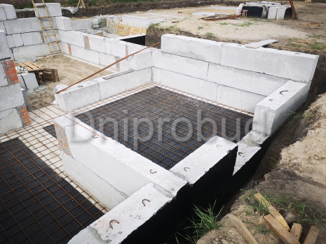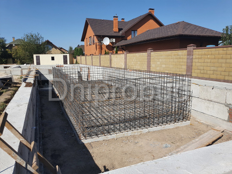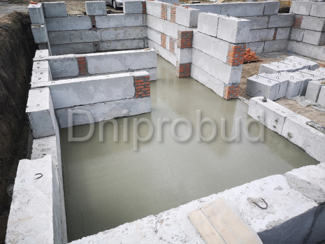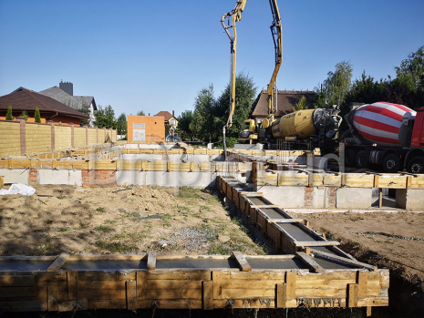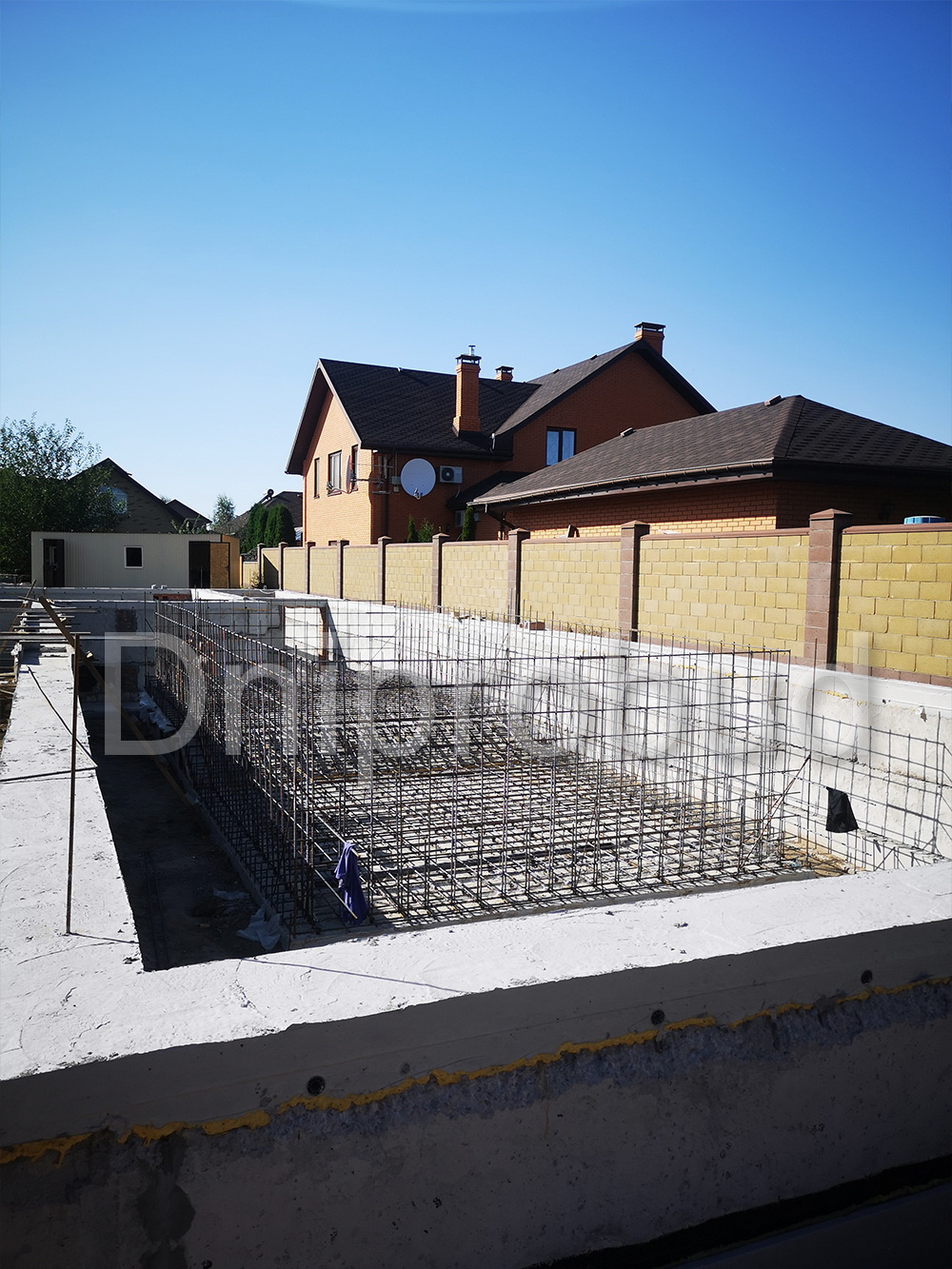 Фундамент объекта сборно-монолитный: монолитная железобетонная подушка+4 ряда блоков в цокольной части дома, 3 ряда блоков в зоне гостиной, 2 ряда блоков в зоне бассейна и 1 ряд блоков в зоне гаража. Материал стен - керамический блок. Кровля - натуральная черепица. Наружная отделка стен выполнена в трех материалах - декоративная штукатурка+клинкерный кирпич+алюминиевые композитные панели, отделка цоколя - гранитные плиты.