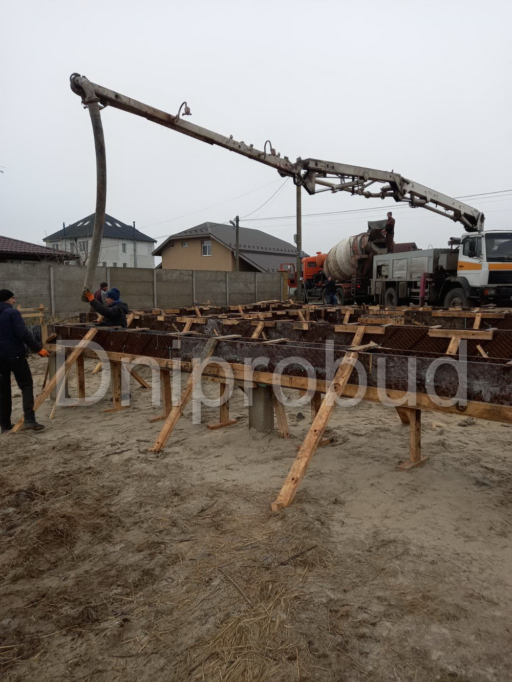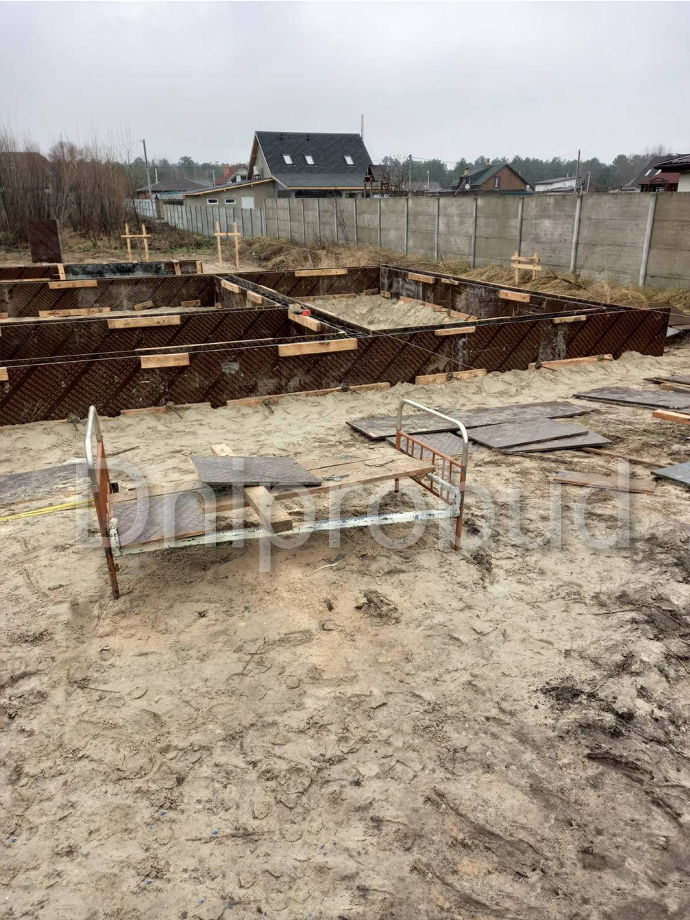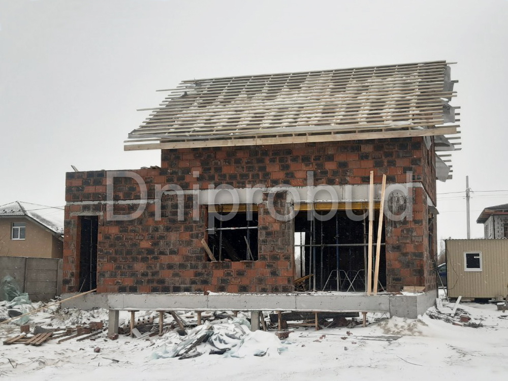 В связи с близким расположением грунтовых вод, конструктивная схема здания была рассчитана на фундаменте из забивных свай, ростверк высотой 60 см. Несущие стены дома из керамических блоков толщиной 25 см. Монолитное межэтажное перекрытие. Крыша дома двускатная. Утепление крыши дома осуществлялось с использованием минеральной ваты толщиной 200 мм.