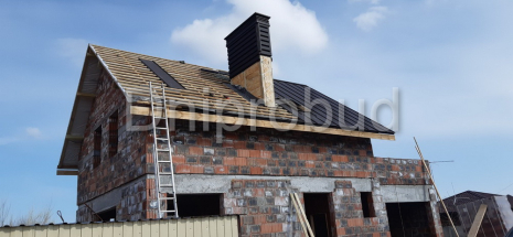 - Поскольку дом строился в зоне повышенной влажности воздуха, для покрытия крыши использована металлочерепица.