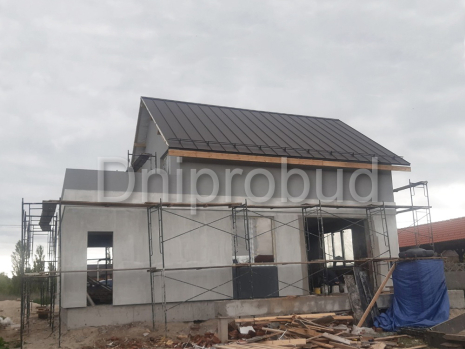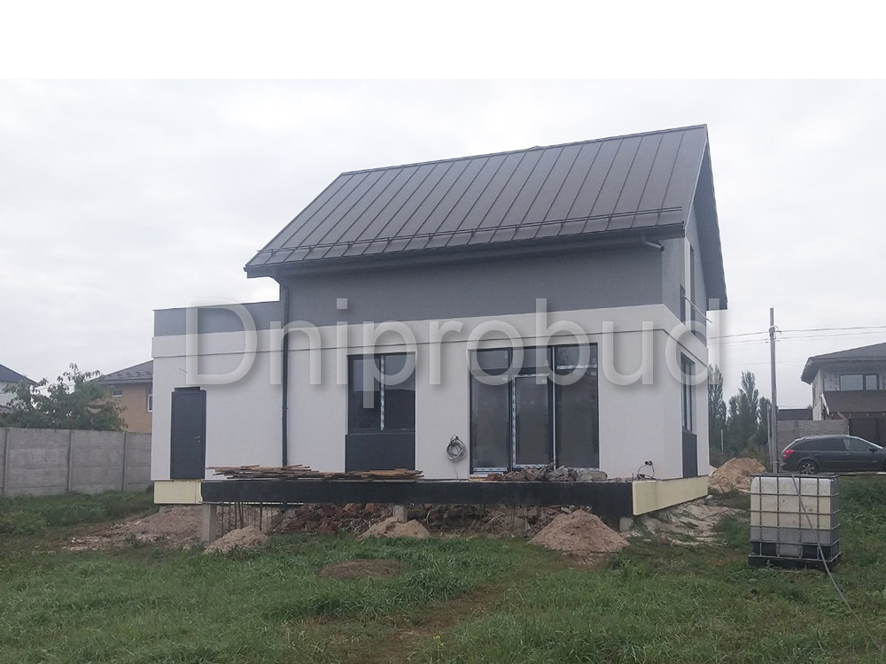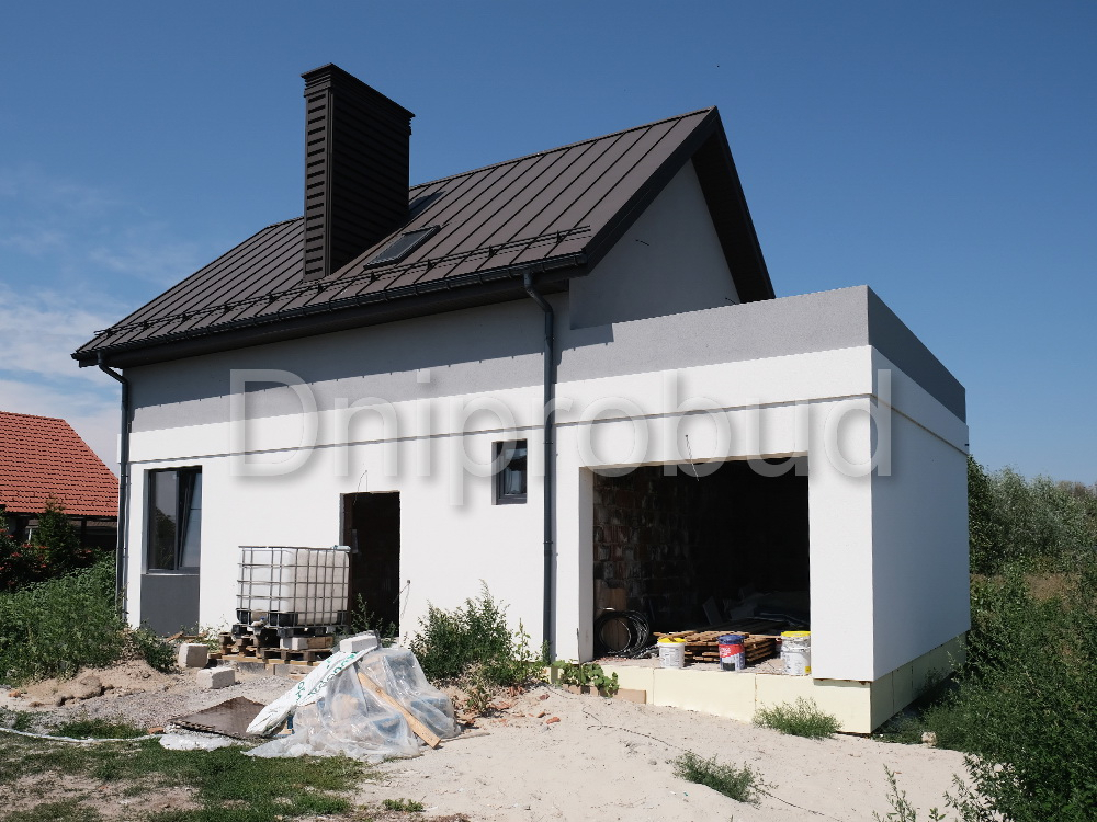 Небольшой дом мансардного типа в с. Глебовка, Киевской области по типовому проекту от компании Z500 U217 с гаражом на одну машину.