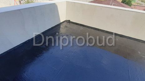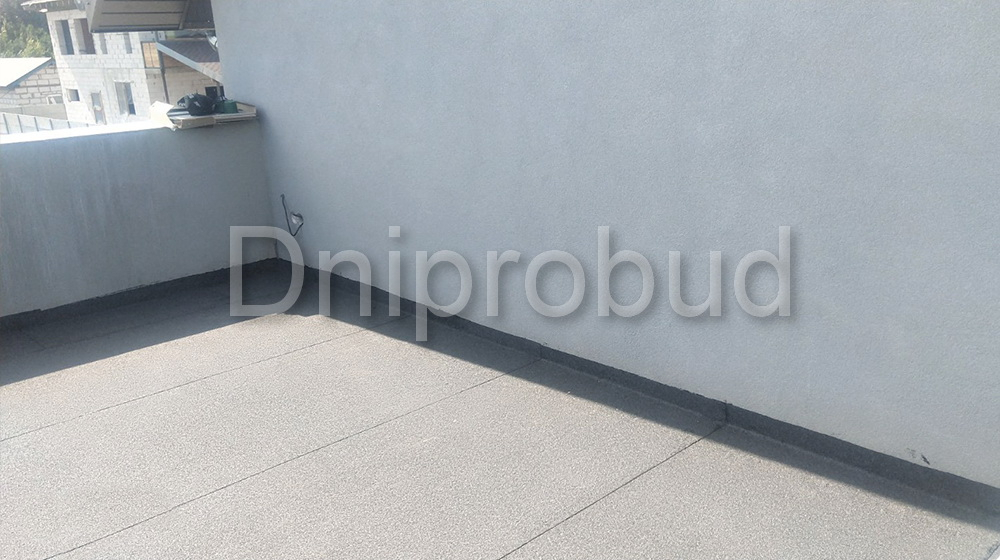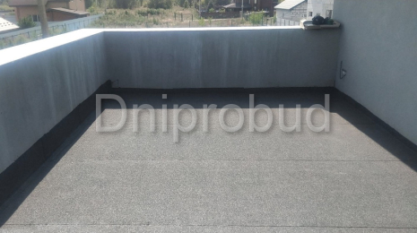 Крыша над гаражом монолитная, плоская. Утепление крыши гаража выполнено пенополистиролом. Стяжка с уклоном из жесткого цементно-песчаного раствора для отвода дождевой воды.