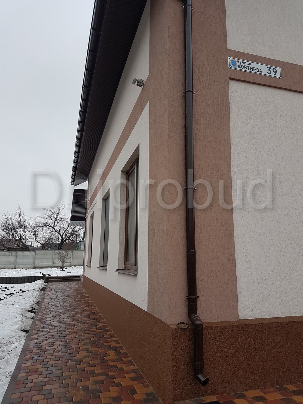 Строительство классического коттеджа мансардного типа в Днепропетровске . Площадь 170 м. кв. Большая терраса с барбекю. Кухня-столовая отделена от гостиной. Полная перестройка старого дома с усилением фундамента. 3 вида отопления: газ, электричество, твердое топливо. В 2016 году была построена отдельно стоящая баня.