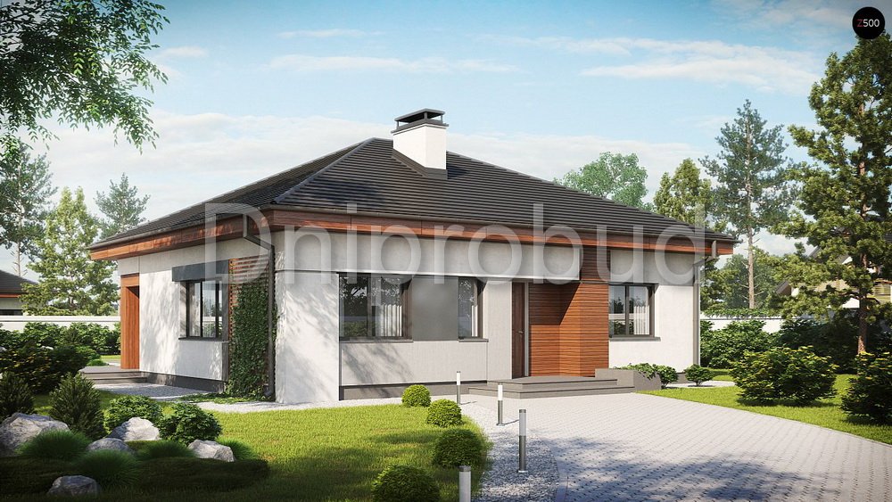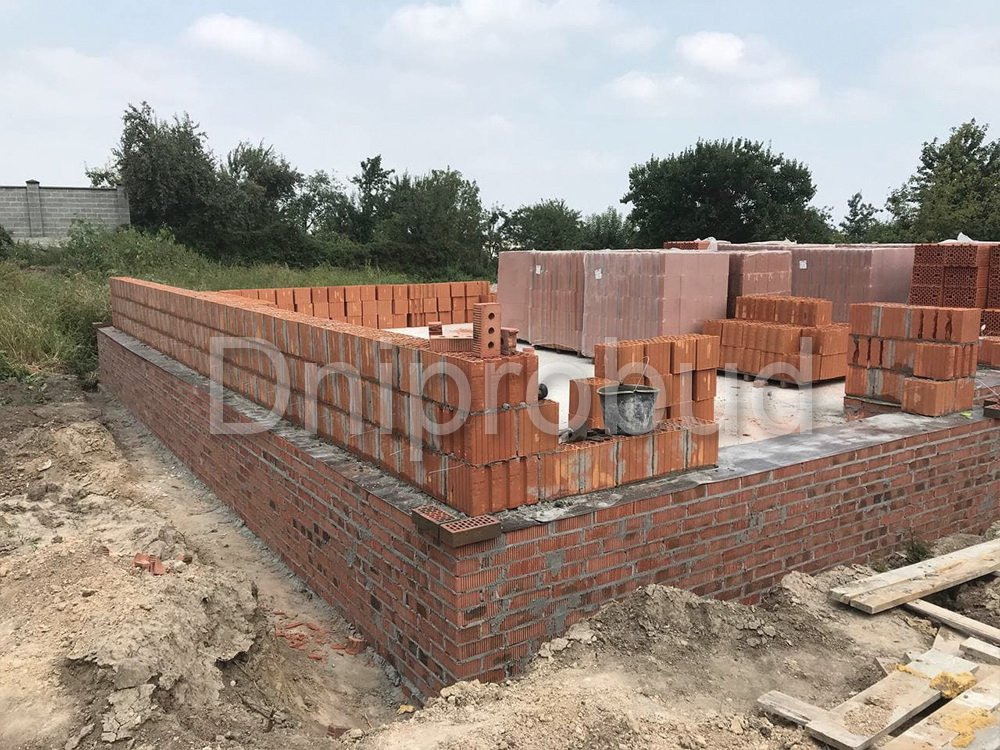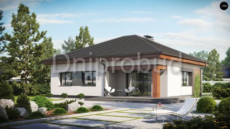 Одноэтажный дом в городе Днепр, возведенный по типовому проекту DB 17 от компании Dniprobud.