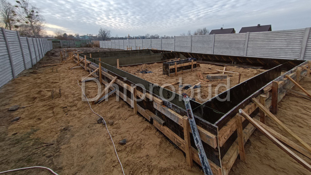 Дом возведён на свайном фундаменте с ростверком, выполнена обратная засыпка, обустроена канализация и подготовлен пол по грунту.