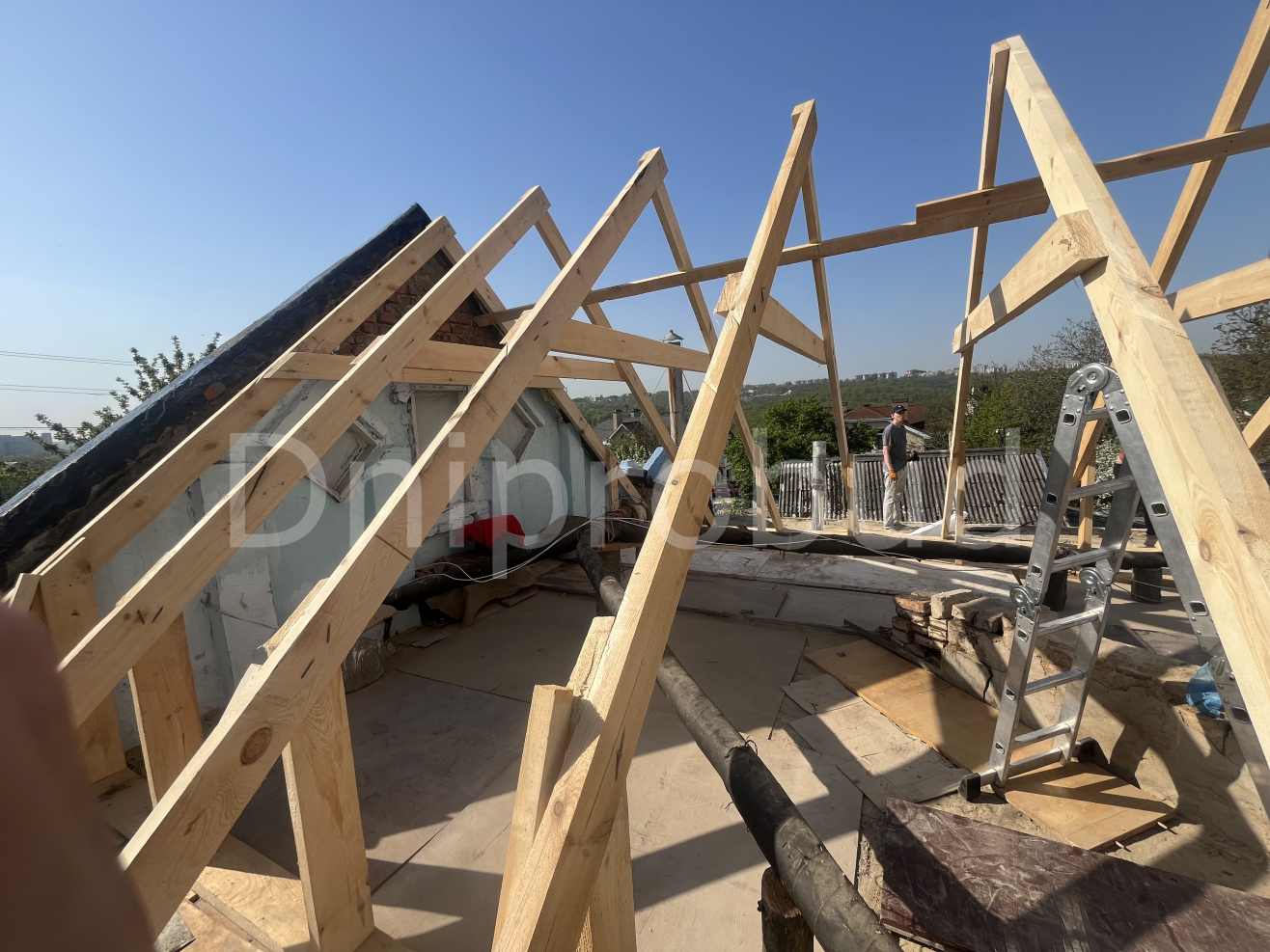 В рамках программы «єВідновлення» было выполнено восстановление жилого дома в городе Днепр, который пострадал в результате вооружённой агрессии российской федерации. При обследовании были выявлены значительные повреждения кровли дома. Компания Dniprobud осуществила полный комплекс восстановительных работ, в том числе: устройство новой кровли, монтаж окон и дверей, а также выполнение внутренних ремонтных работ.