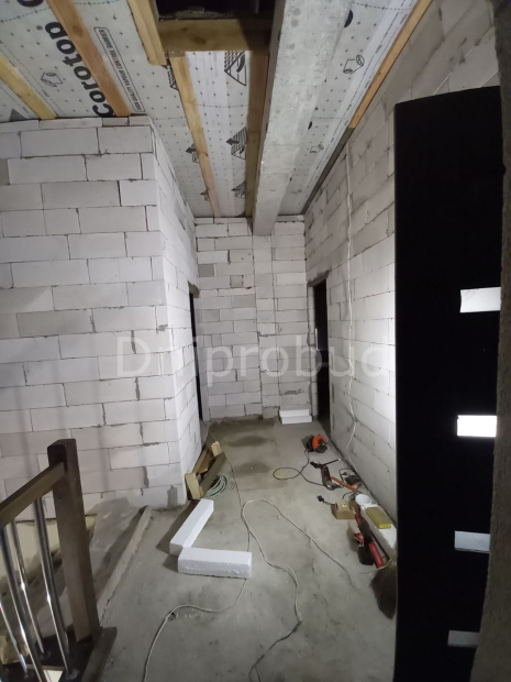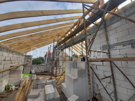 - Кладка стен второго этажа с устройством усиленного армированного пояса и устройством новой кровли над домом и парковкой.