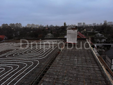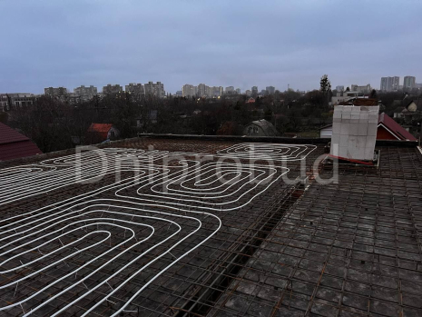 В монолитную плиту встроена система труб для обогрева и охлаждения помещений, что позволяет поддерживать комфортную температуру в доме в любое время года.
