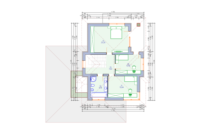 • Узлы - разрезы по стенам, устройство перемычки, коньковый гребень, примыкание к дымовой трубе, подшивка кровли, устройство деревянной обшивки, армирование террасы, опирание перегородок на плиту пола 1-го этажа, опирание внешней стены на фундамент.