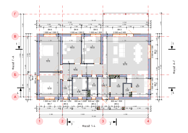 • Фасады здания (4 проекции);