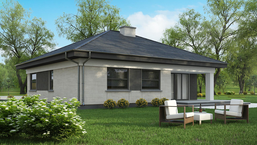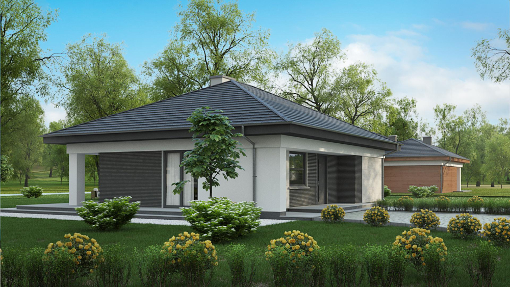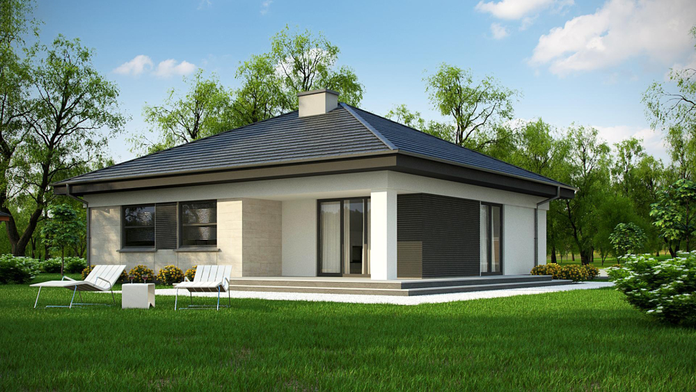 Одноэтажный дом небольшой площади со вторым светом над гостиной