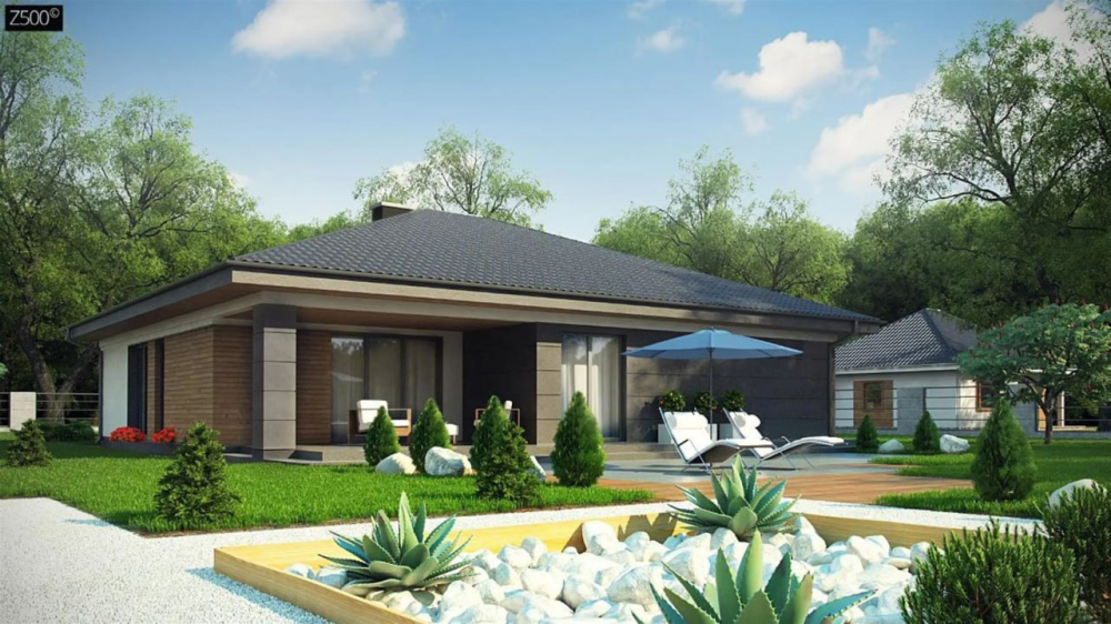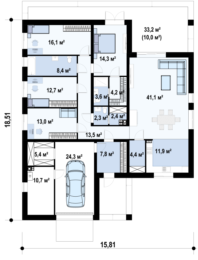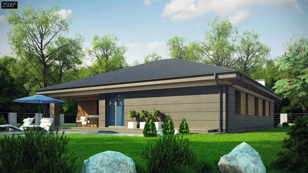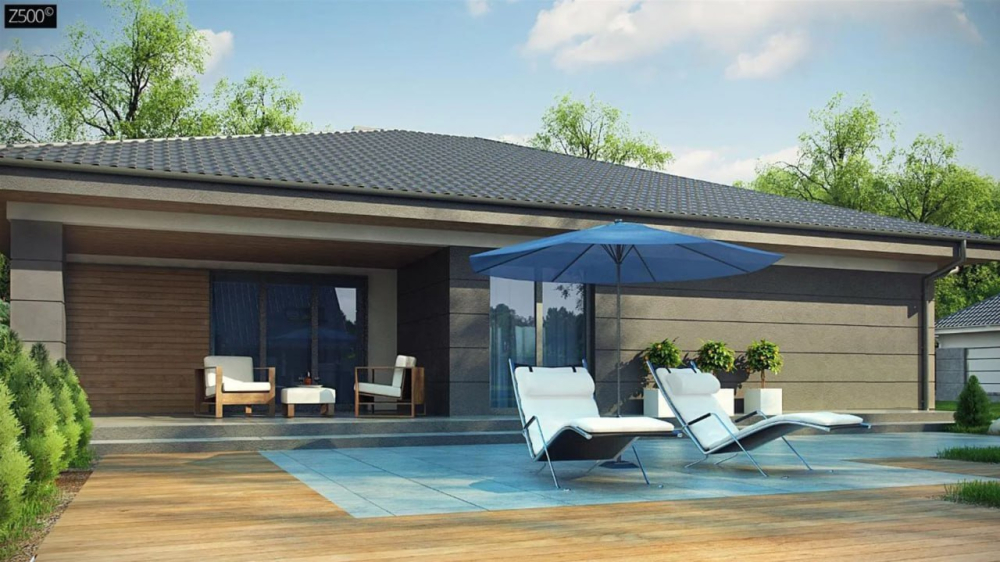 U379 v1 - современный одноэтажный дом с гаражом, созданный для комфортной жизни семьи из 3–5 человек. Это обновлённая версия популярного проекта с улучшенной планировкой, где каждый метр используется максимально эффективно.
