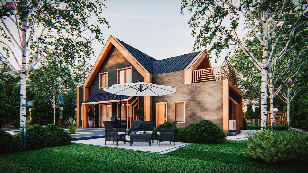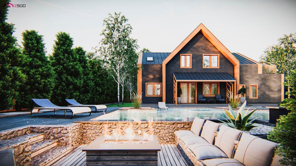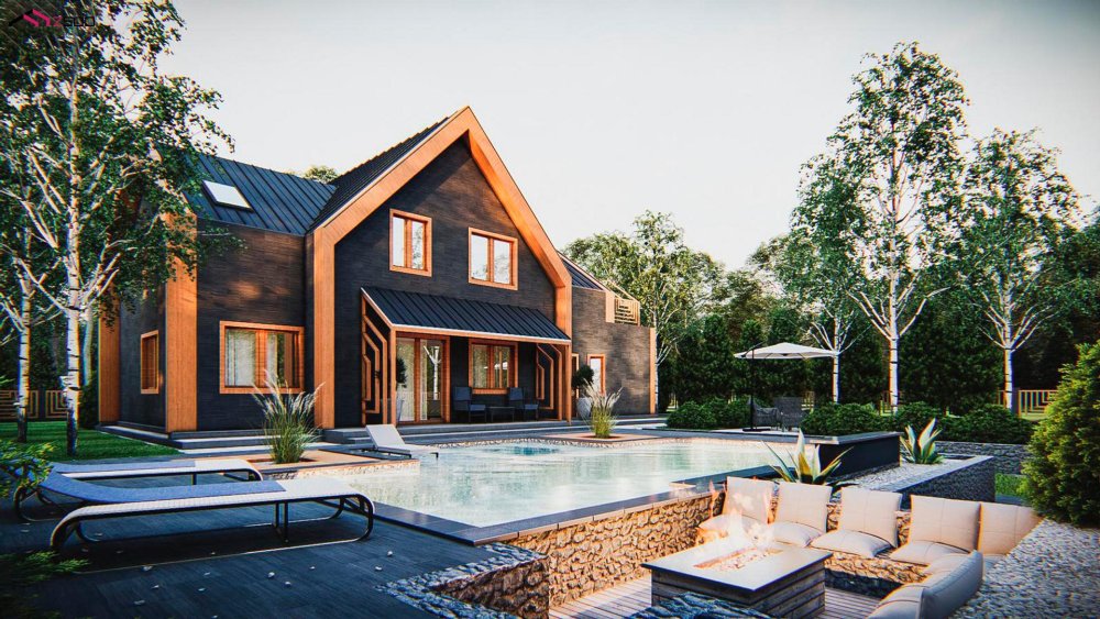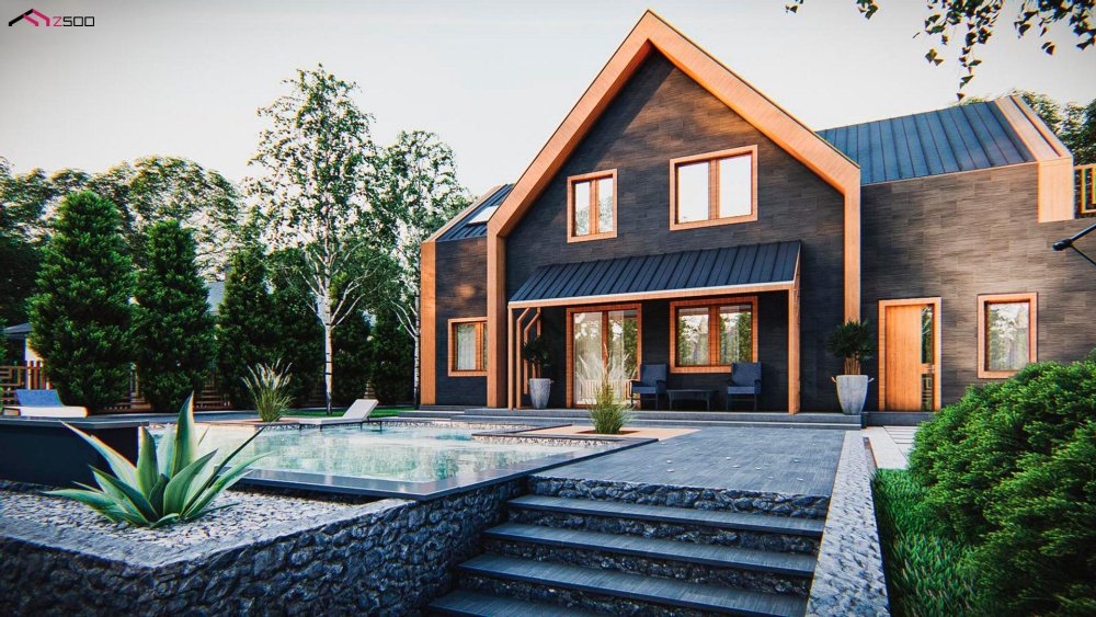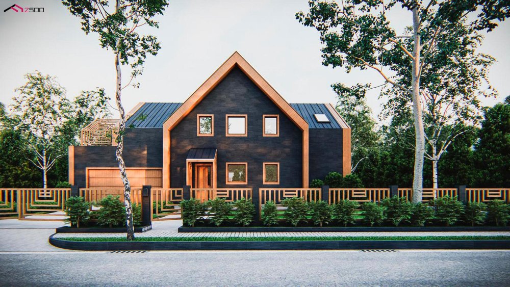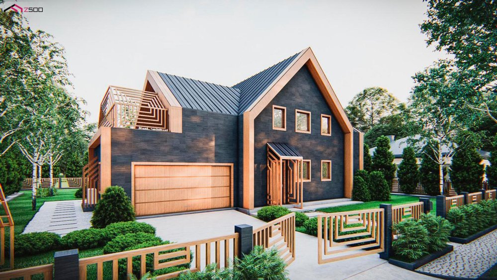 Современный мансардный дом с оригинальной отделкой для большой семьи
