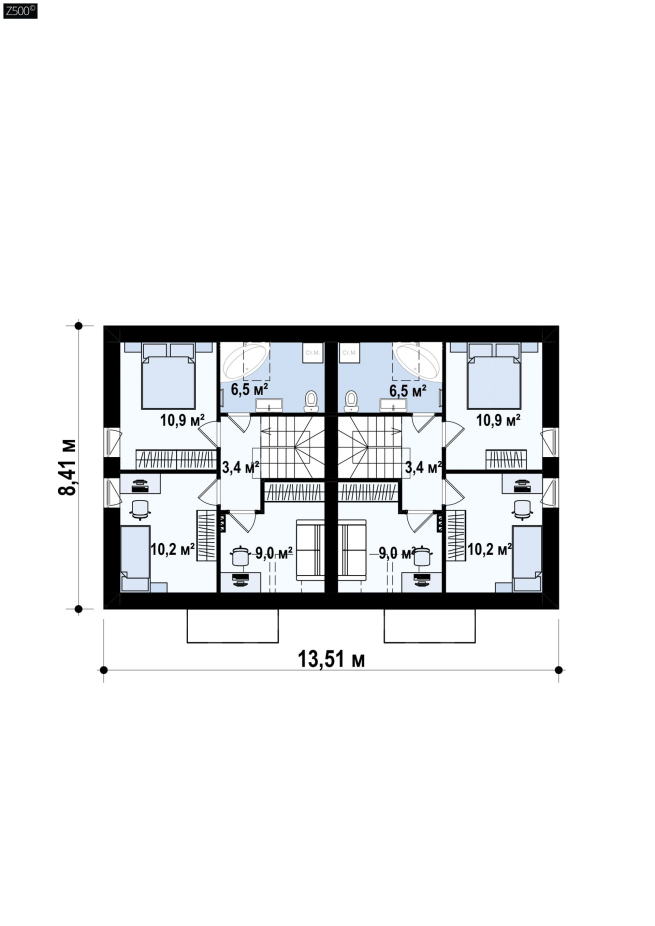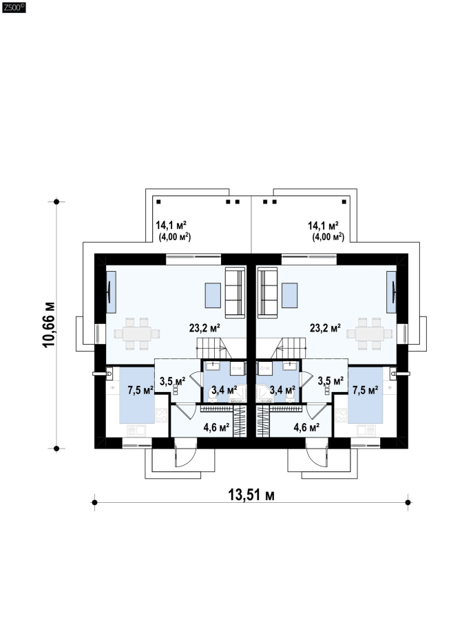 Компактный двухсемейный дом с тремя спальнями на мансарде