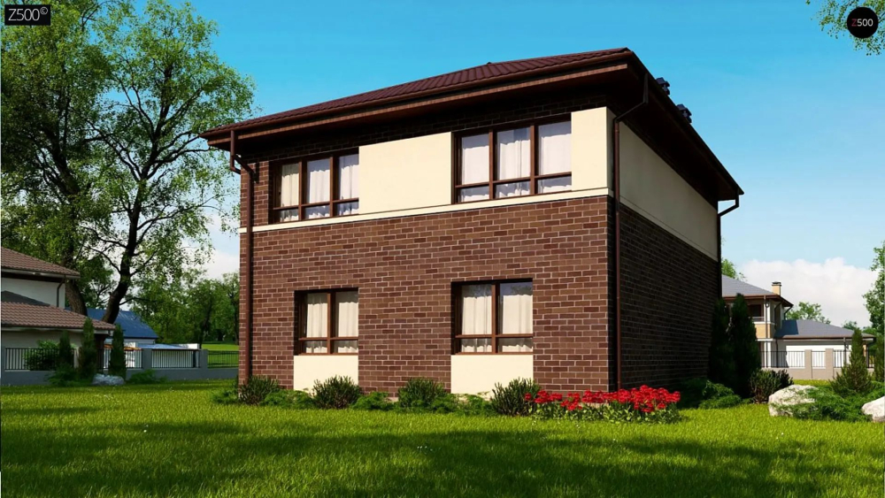 Дом отличается элегантным внешним видом благодаря сочетанию кирпичной облицовки и современных дизайнерских решений. Благодаря большим окнам и продуманной планировке в помещениях всегда много естественного света и ощущение простора. Все помещения расположены максимально удобно для повседневной жизни, есть достаточно мест для хранения и несколько санузлов для комфорта всех жильцов. Спальные зоны на втором этаже обеспечивают приватность и уют для каждого члена семьи.