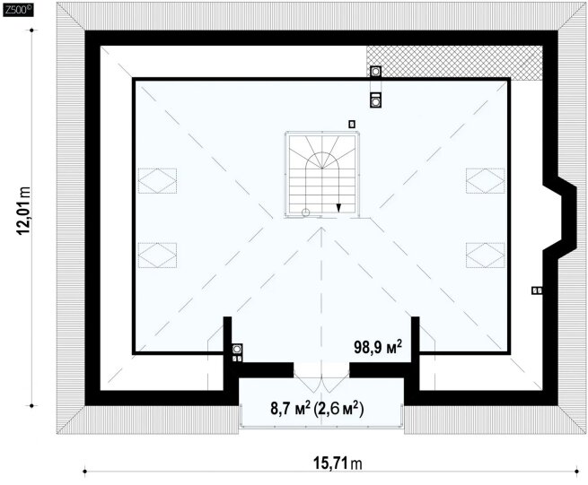 Возможно строительство альтернативных видов кровли, например керамическая плитка, компазитная черепица и т.п., согласно пожеланиям клиента и по подтверждению конструктора.
