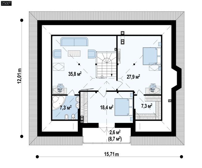 Возможно строительство альтернативных видов кровли, например керамическая плитка, компазитная черепица и т.п., согласно пожеланиям клиента и по подтверждению конструктора.