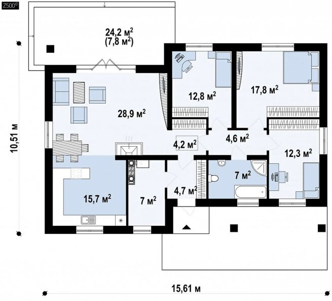 Возможно строительство альтернативных видов кровли, например керамическая плитка, компазитная черепица и т.п., согласно пожеланиям клиента и по подтверждению конструктора.