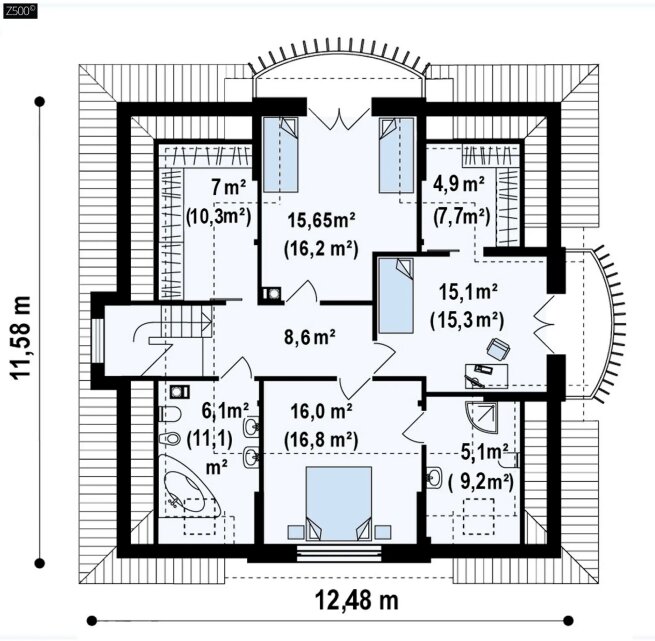 Возможно строительство альтернативных видов кровли, например керамическая плитка, компазитная черепица и т.п., согласно пожеланиям клиента и по подтверждению конструктора.