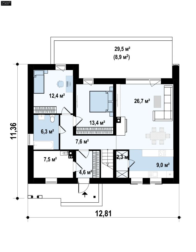 Возможно строительство альтернативных видов кровли, например керамическая плитка, компазитная черепица и т.п., согласно пожеланиям клиента и по подтверждению конструктора.
