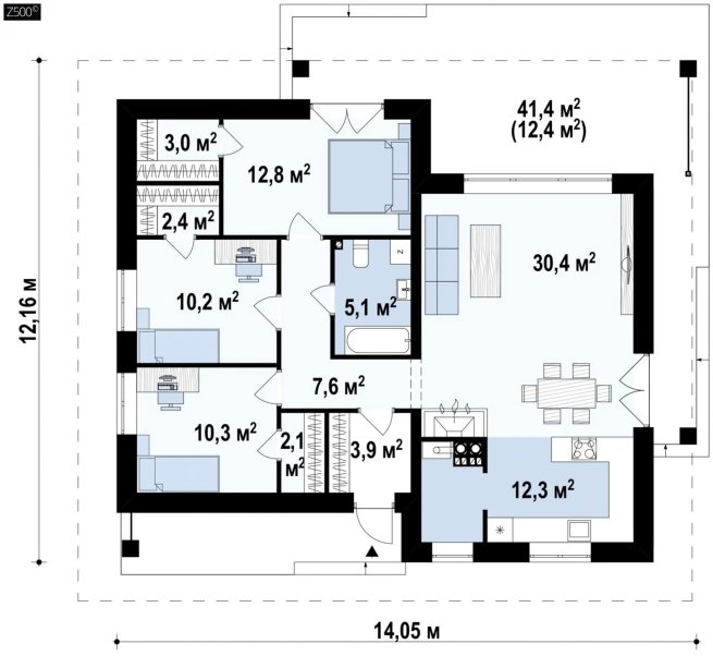 На плоской кровле в течение всей зимы может собраться большой объем снега, частично льдины, которые для конструкции дома опасности не представляют (наши проекты учитывают максимально возможные снежные нагрузки). Но для кровельного покрытия образование льда нежелательно.