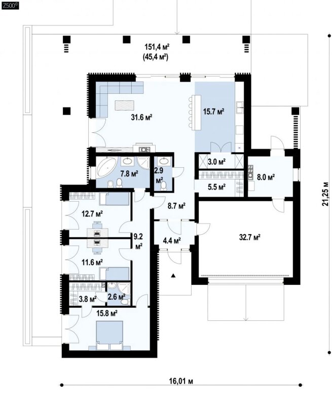 На плоской кровле в течение всей зимы может собраться большой объем снега, частично льдины, которые для конструкции дома опасности не представляют (наши проекты учитывают максимально возможные снежные нагрузки). Но для кровельного покрытия образование льда нежелательно.