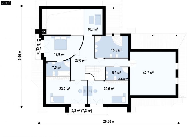 Возможно строительство альтернативных видов кровли, например керамическая плитка, компазитная черепица и т.п., согласно пожеланиям клиента и по подтверждению конструктора.