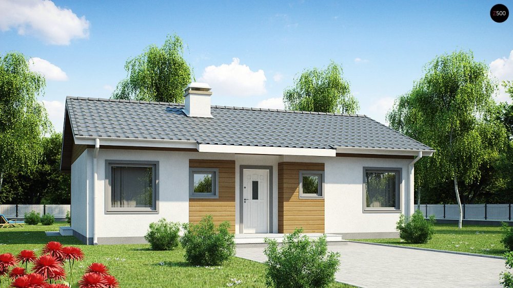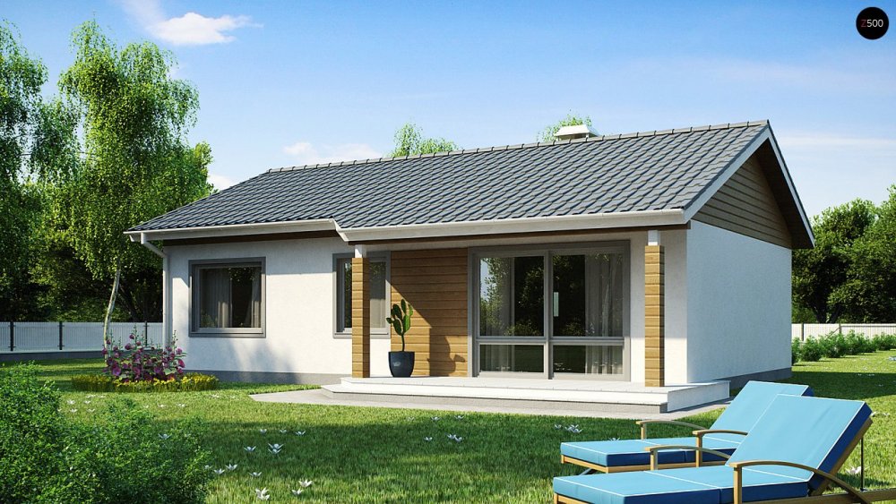 Маленький и недорогой одноэтажный дом с двускатной крышей