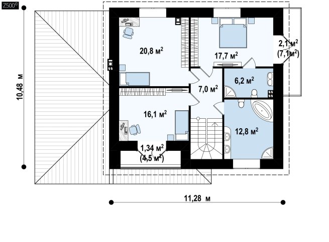 Возможно строительство альтернативных видов кровли, например керамическая плитка, компазитная черепица и т.п., согласно пожеланиям клиента и по подтверждению конструктора.