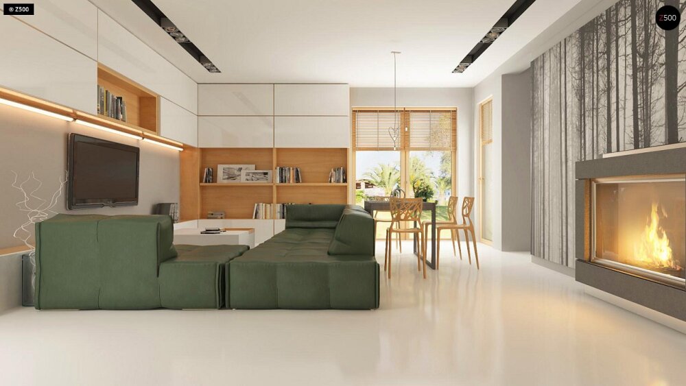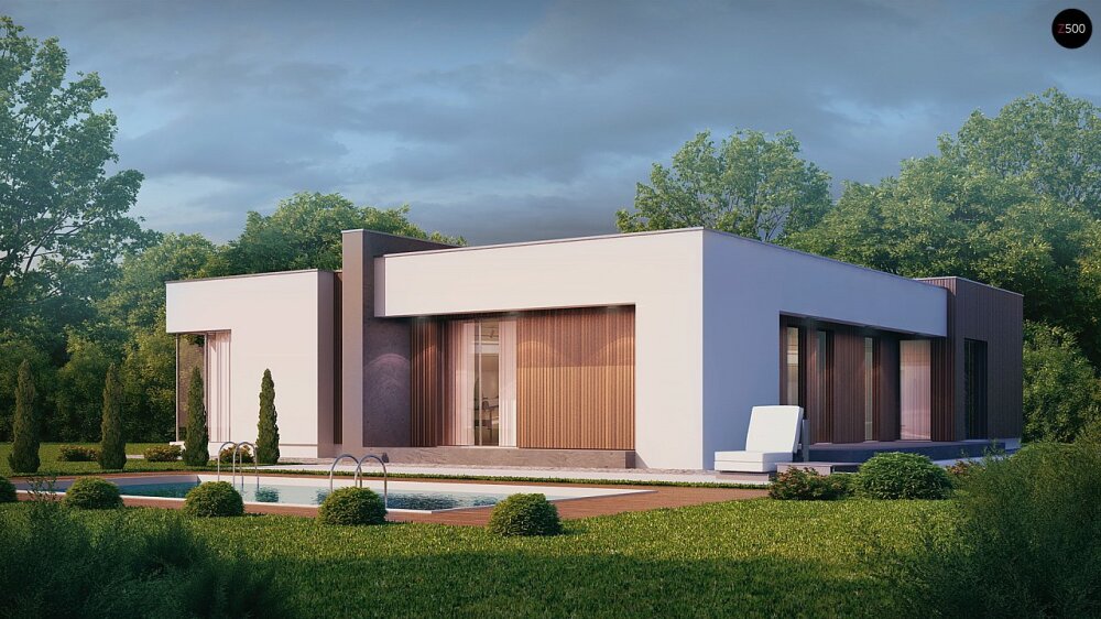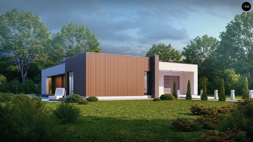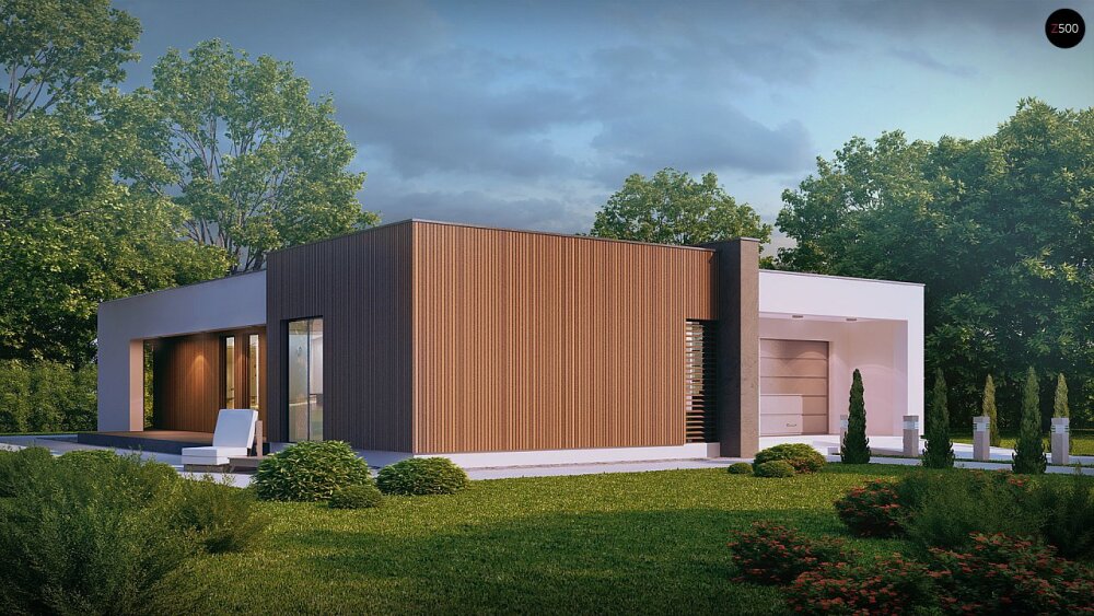 Одноэтажный дом с гаражом – современный дизайн, плоская крыша