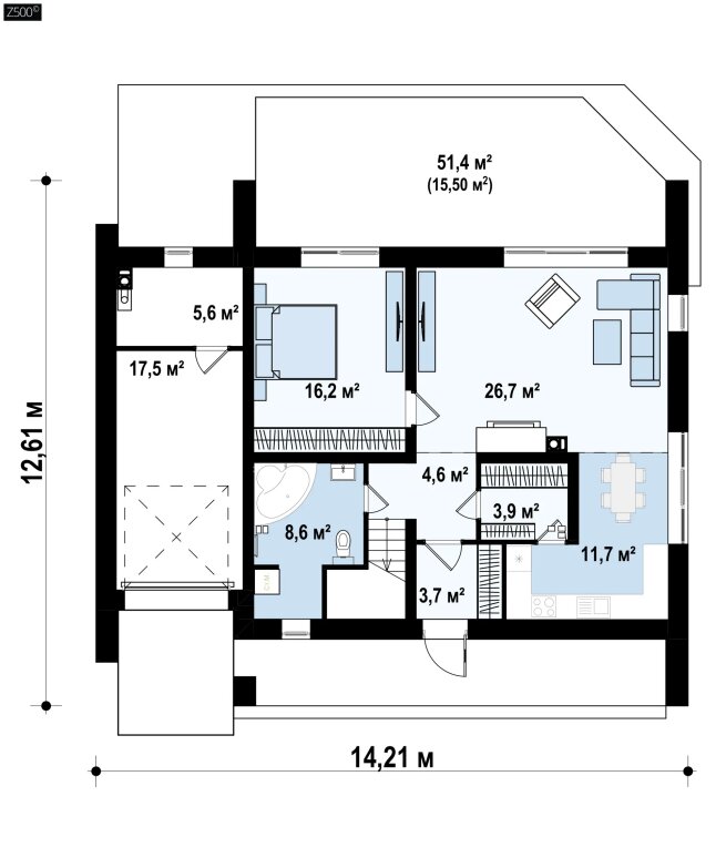 Возможно строительство альтернативных видов кровли, например керамическая плитка, компазитная черепица и т.п., согласно пожеланиям клиента и по подтверждению конструктора.