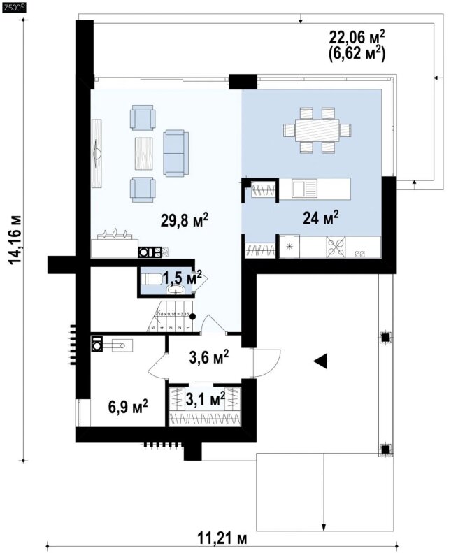 Возможно строительство альтернативных видов кровли, например эксплуатируемая кровля для зеленых зон, террас, бассейнов и т.п., согласно пожеланиям клиента