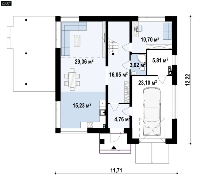 Возможно строительство альтернативных видов кровли, например керамическая плитка, компазитная черепица и т.п., согласно пожеланиям клиента и по подтверждению конструктора.