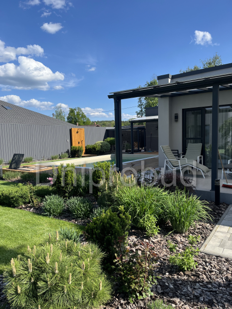 У зв’язку з тим що ґрунти на ділянці піщані для організації поливу з оптимальним використанням води, було замінено частково пісок під газоном на суглинок з трамбуванням. Очищення води для використання у господарстві та обладнання для басейну розміщені в одному технічному приміщені поруч з басейном, що дало можливість оптимізувати траси водопостачання, включаючи підігрів води в басейні та подачу води в гостьовий будинок.