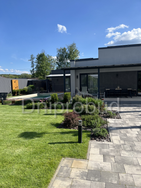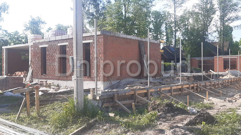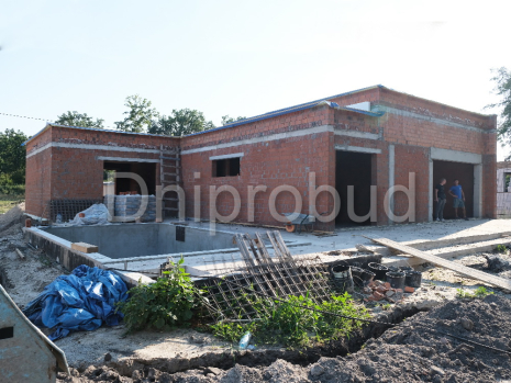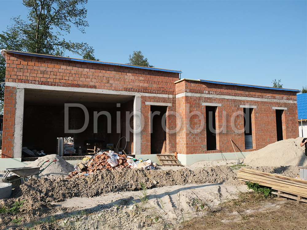 Великий одноповерховий будинок у с. Круглик, Київської області, збудований за індивідуальним проєктом замовника.