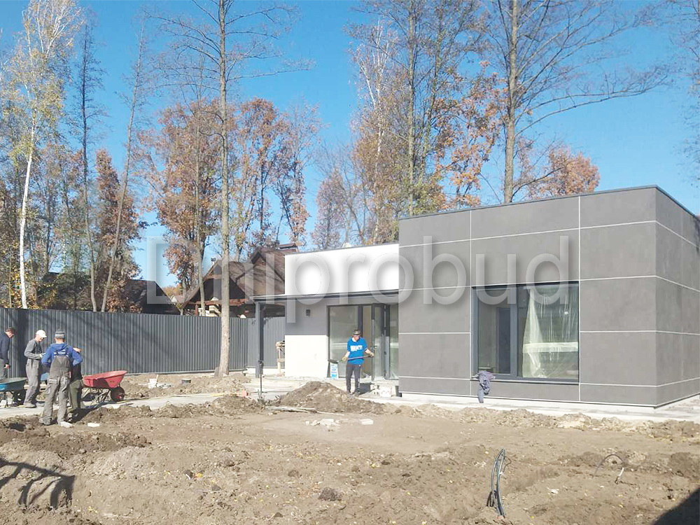 Однією з умов будівництва основного будинку було те, що замовник винаймав житло і було прийнято рішення паралельно будувати гостьовий будинок, для пришвидшення термінів переселення замовників у своє житло до завершення будівництва основного будинку. Після облаштування гостьового будинку замовники переїхали на постійне мешкання в цей будинок.