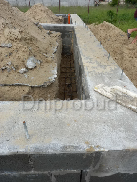 - Фундамент: стрічковий, монолітний, виконаний із використанням блоків незнімної опалубки.