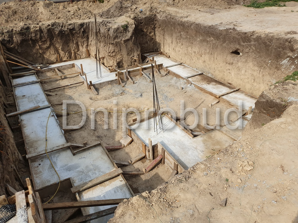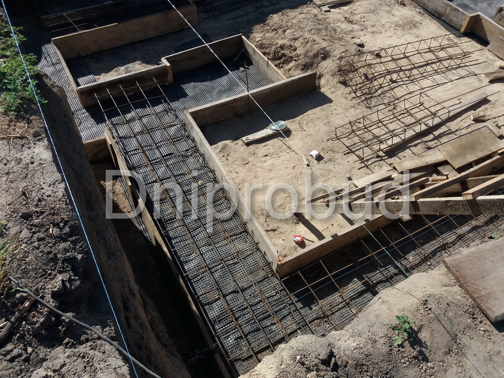 За побажанням замовника організовано підвальне приміщення під 60% плями забудови. Вибір такої площі був обумовлений з одного боку відсутністю потреби у великому підвалі (під всім будинком), а з іншого розміщенням несучих стін всередині будинку, адже спорудження цокольного приміщення між несучими стінами є найбільш економічно обґрунтованим. Додатково спеціалістами компанії Дніпробуд було облаштовано блок димоходів для можливої в майбутньому установки твердопаливного котла.