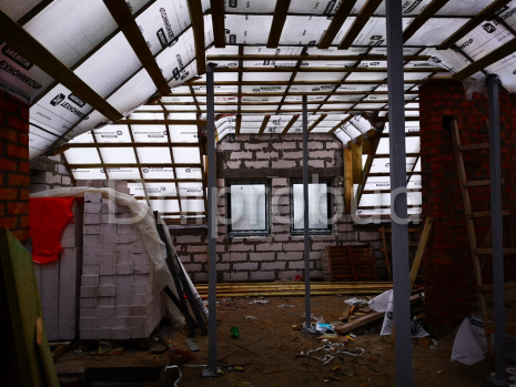 - Матеріал стін - газобетон, несучих простінків і вентканалів - керамічний блок.
