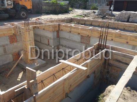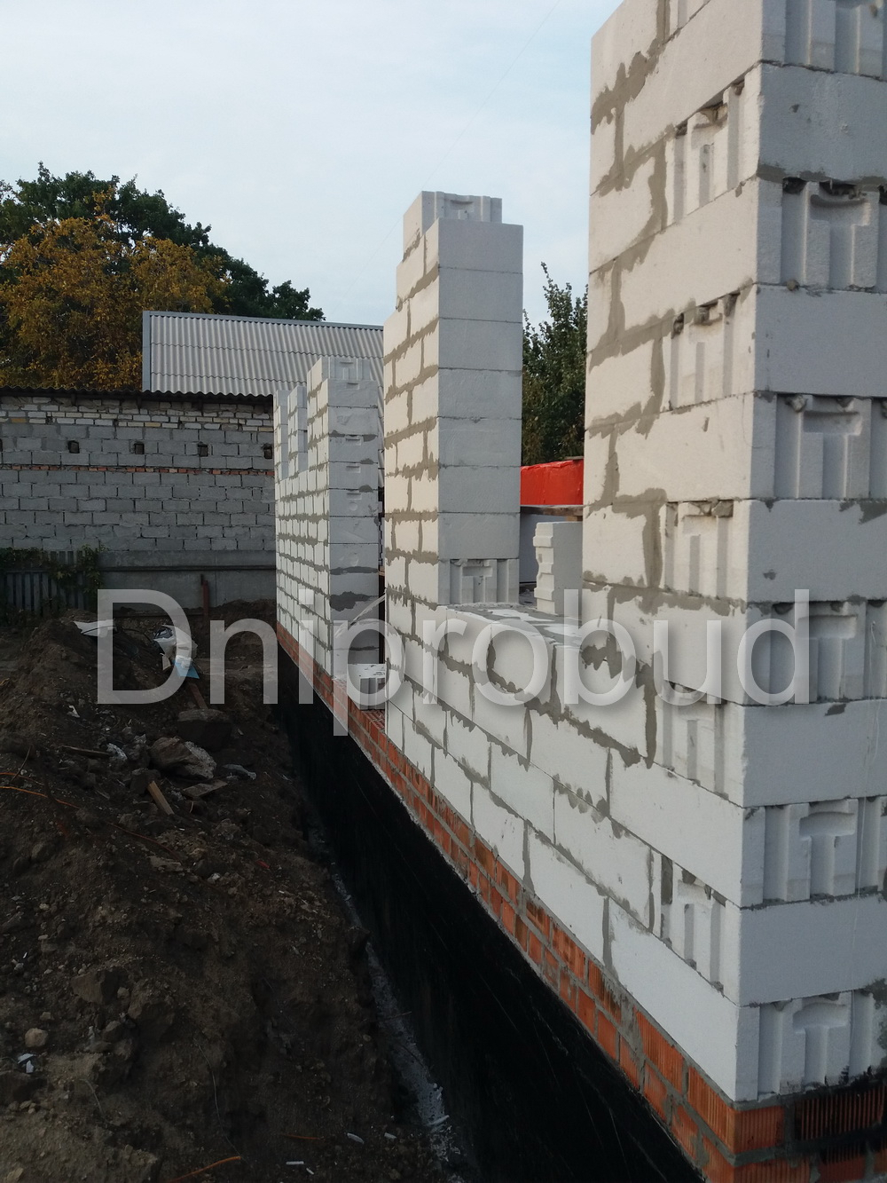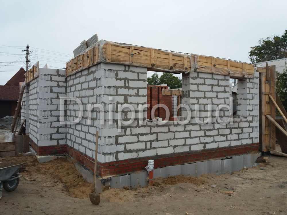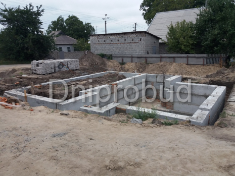 - Фундамент - стрічкова залізобетонна подушка, стіни фундаменту з блоків ФБС.
