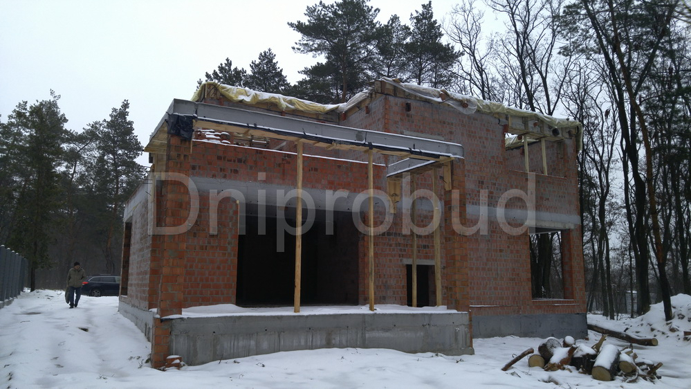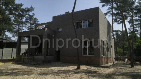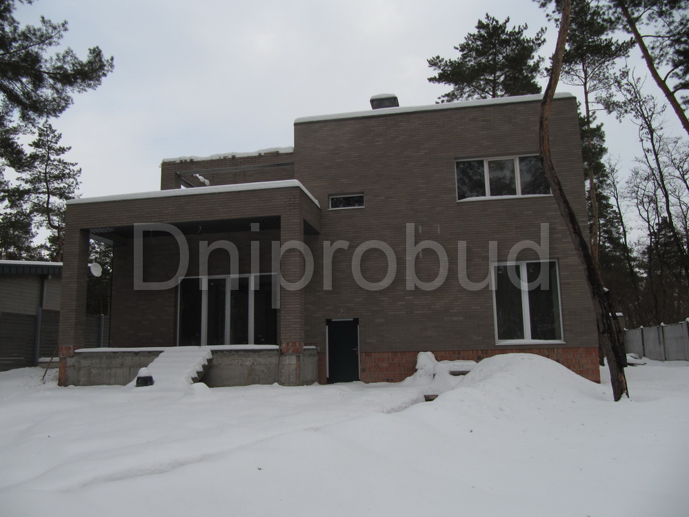 Сучасний двоповерховий будинок з плоскою покрівлею в с. Обухівка, Дніпропетровської області з цокольним поверхом, що займає 1/3 будинку. Компанією Dniprobud було розроблено індивідуальний проєкт будинку для замовника.