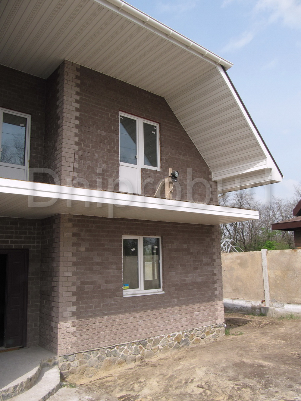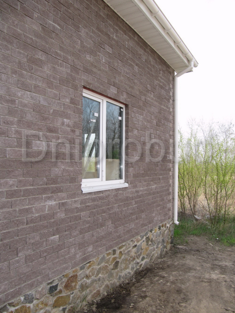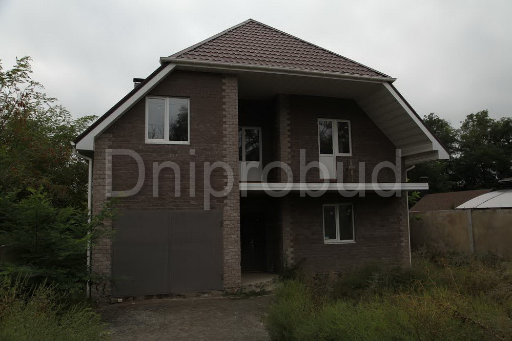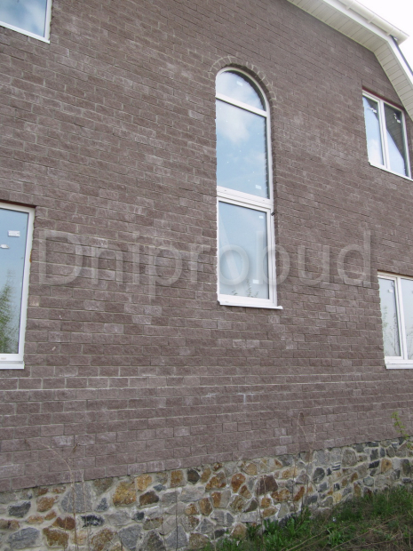 Класичний будинок мансардного типу. 215 м. кв. Стіни: черепашник (з перев'язкою загальнобудівельною цеглою), утеплення — мін. вата+ облицювальна цегла.